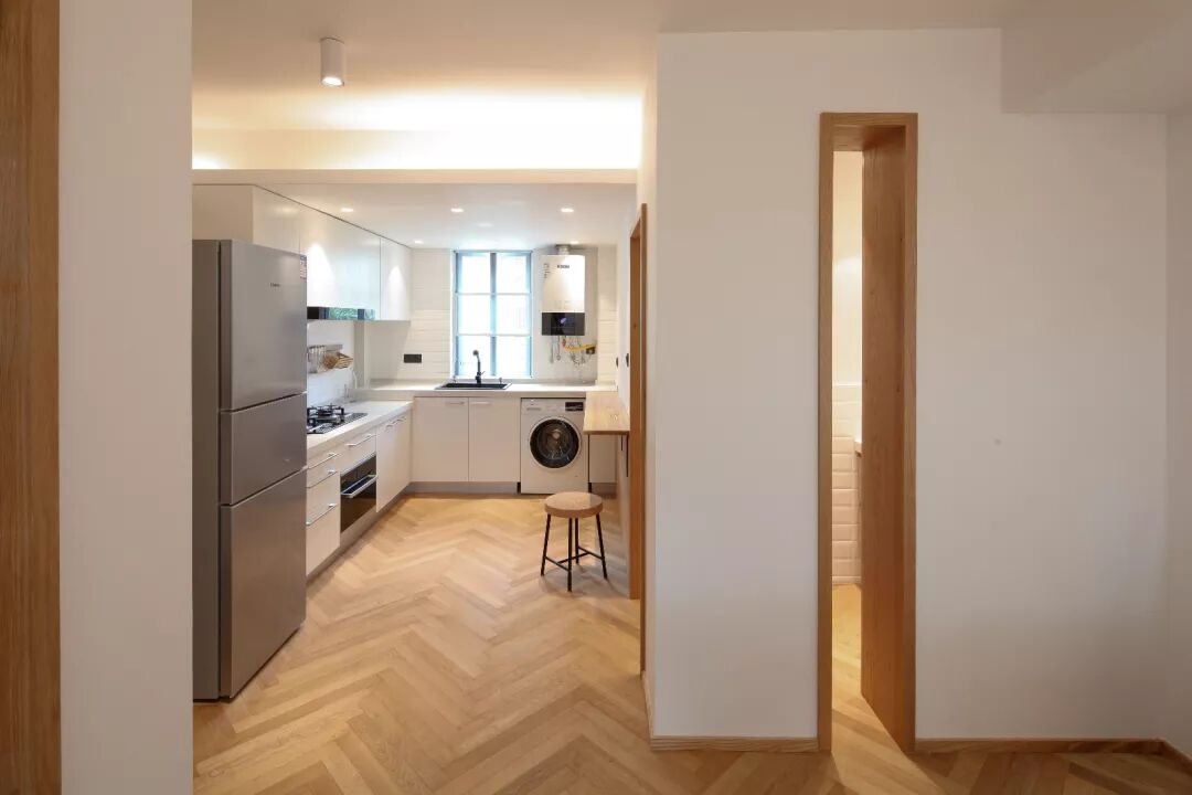 ▲进门的左侧是厨房,小房子的厨房面积不大,不过也能满足基本的下厨需求,冰箱在鞋柜对面,默默的解决了没有玄关的问题;