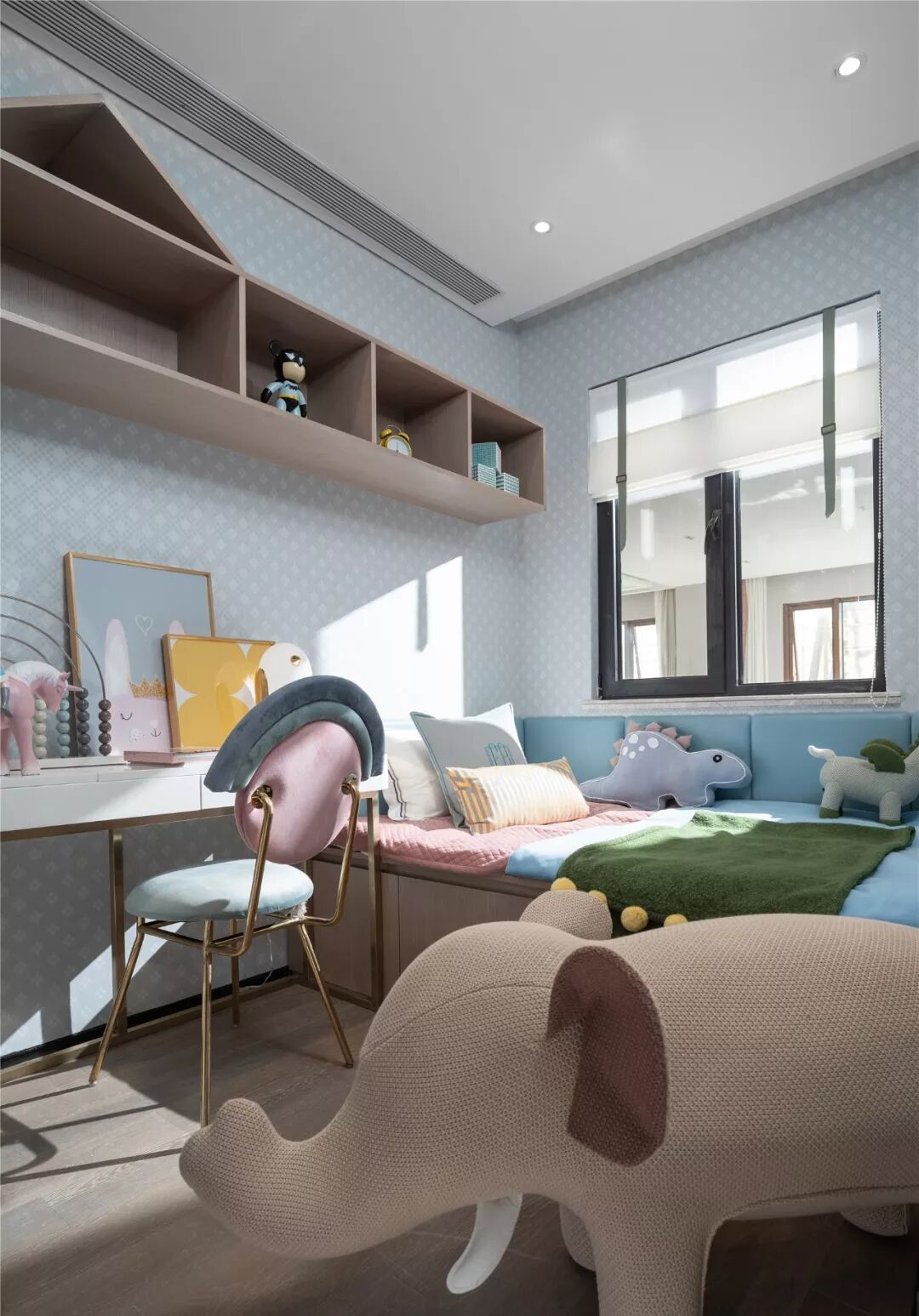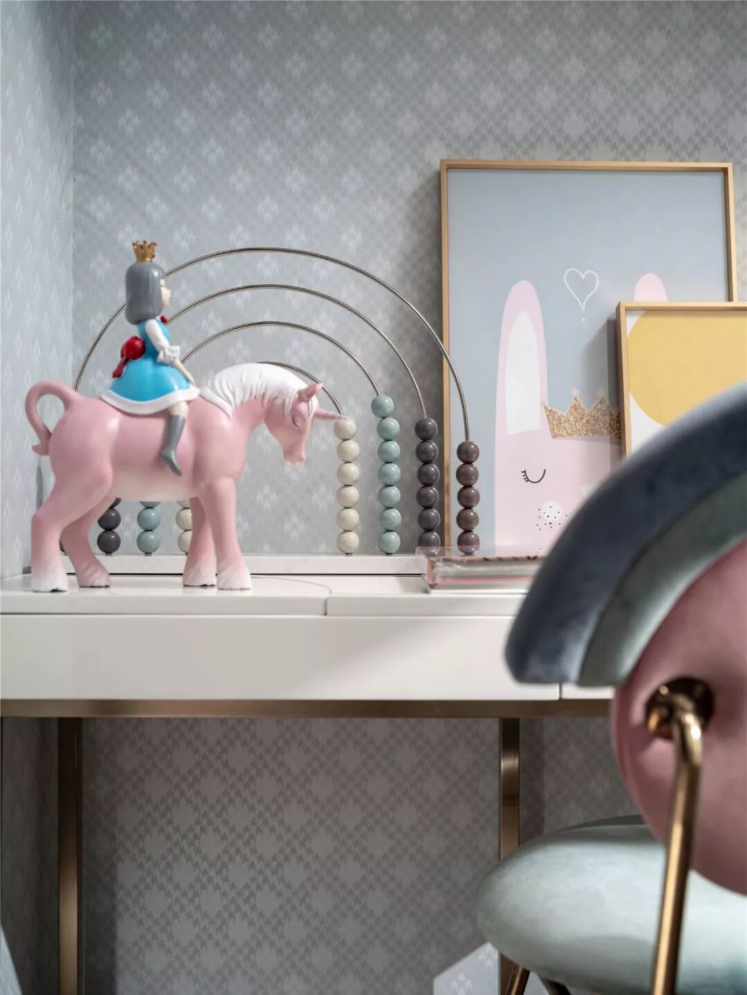 经由马卡龙色调的清甜组合,以萌趣的动物为主题,创造一个温馨的童话乐园。独角兽的装饰品,似在温柔守护着小女孩的天真无邪。偶有微风从耳旁吹过,空间更显灵动与妙趣。