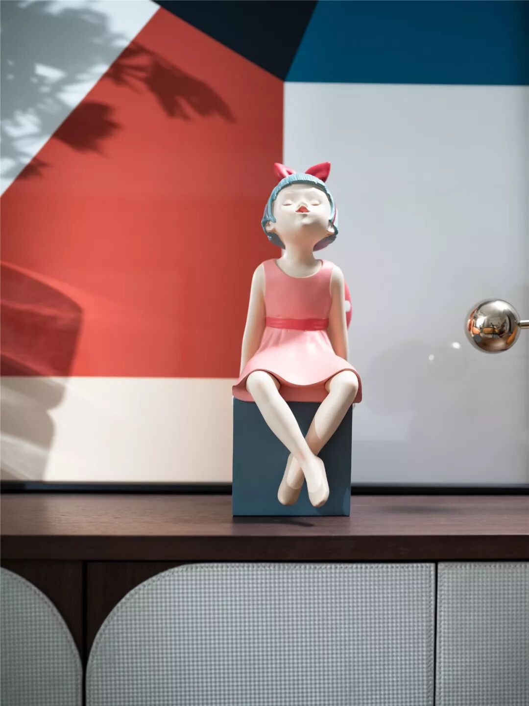 细抚日常生活的脉络,设计师以细腻丰富的色彩美学渲染情感的表达。云雾蓝系列摆件,静默于心表达内化的艺术世界。洗练的笔触下,几何线条与大面积色块的穿插、连接、对比,构建出空间的鲜明与利落感,感染着每一个入访者。