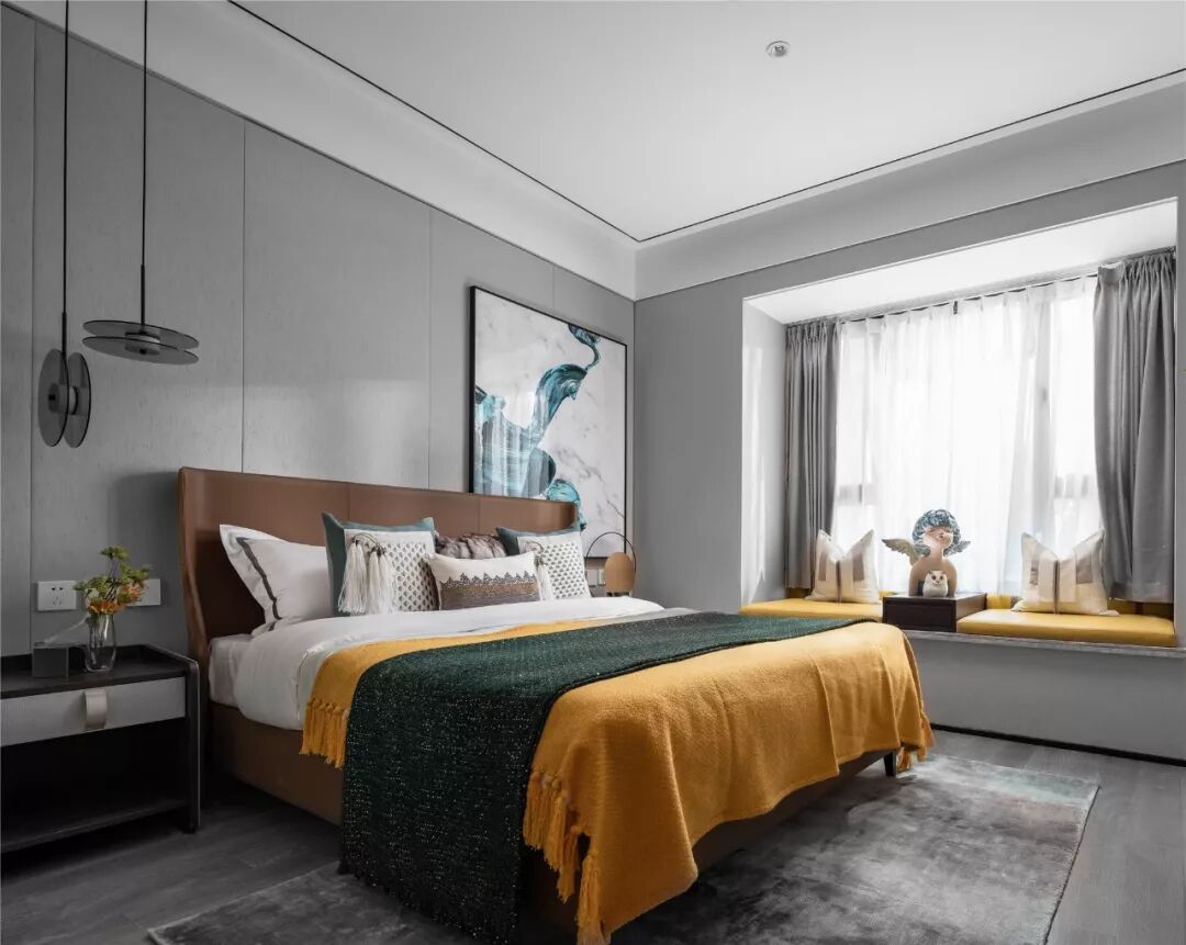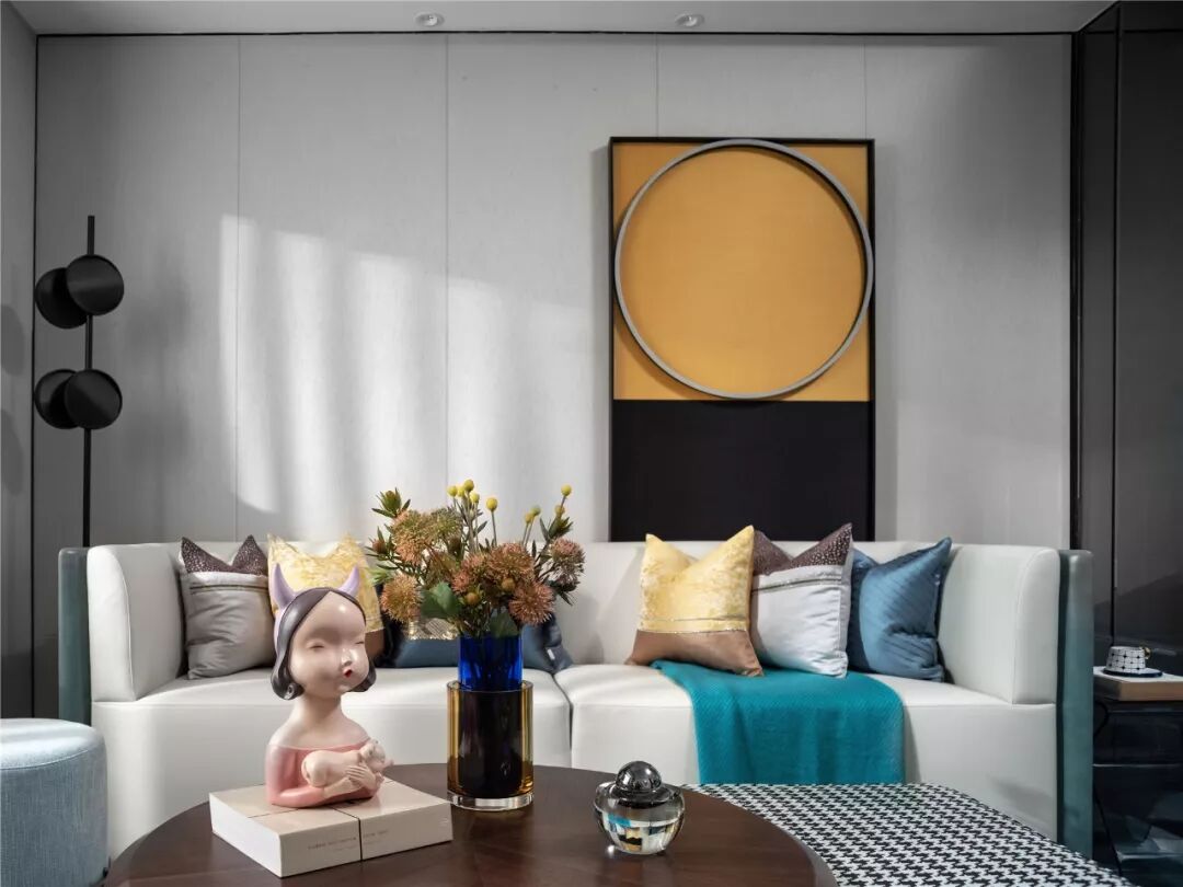 在灰白的肌底中,邂逅靓丽的明黄色,散发出活跃温馨的意蕴。从细节出发,不同色彩与材质的融合碰撞,展现空间的优雅姿态。艺术摆件、抽象的装饰画等以独特的造型凸显美感,它们既是生活艺术的一部分,也是生活美学的具象呈现。