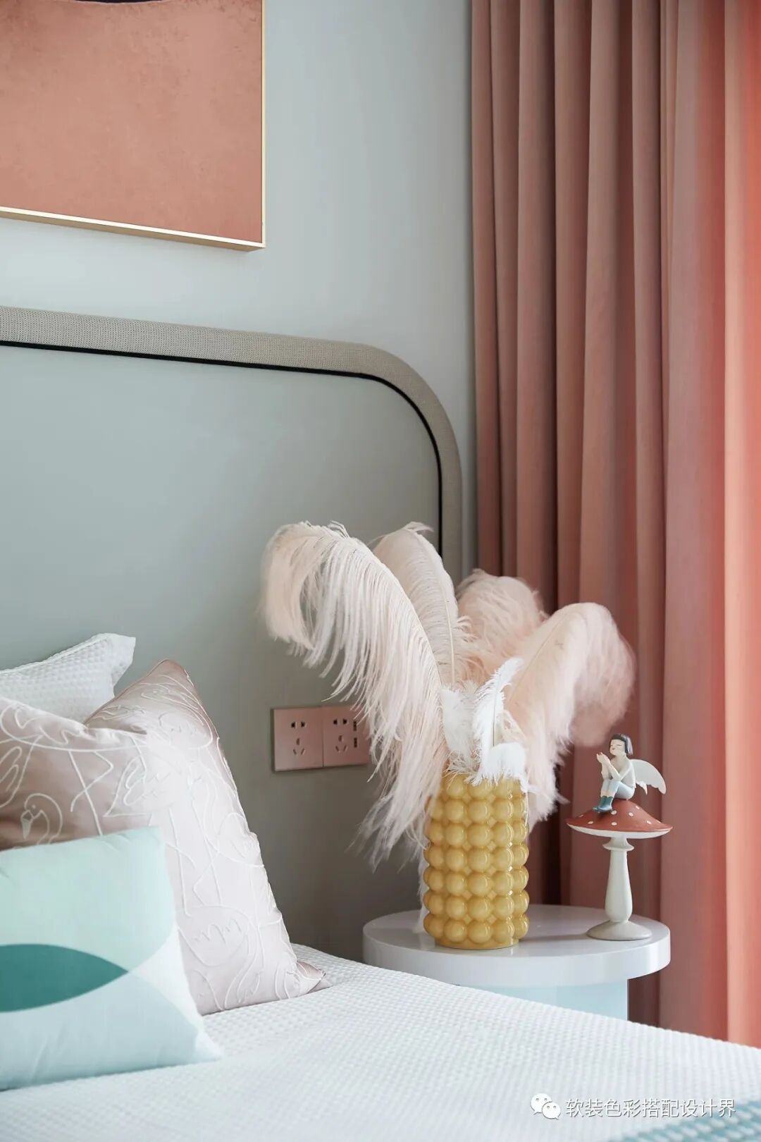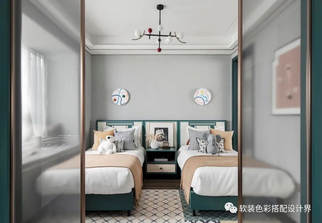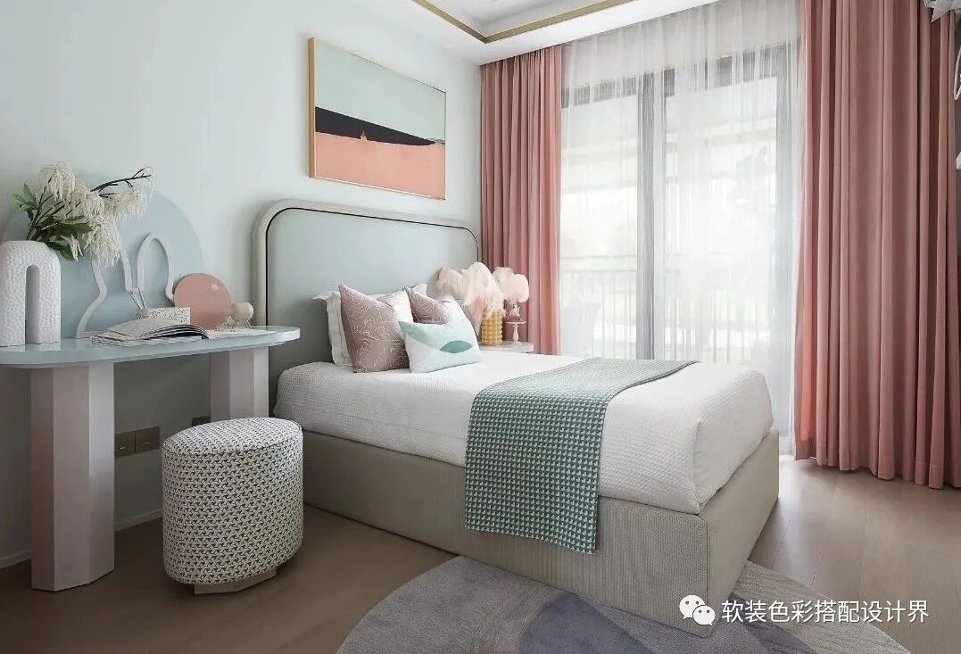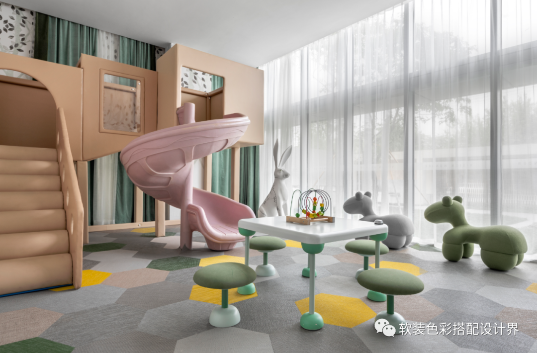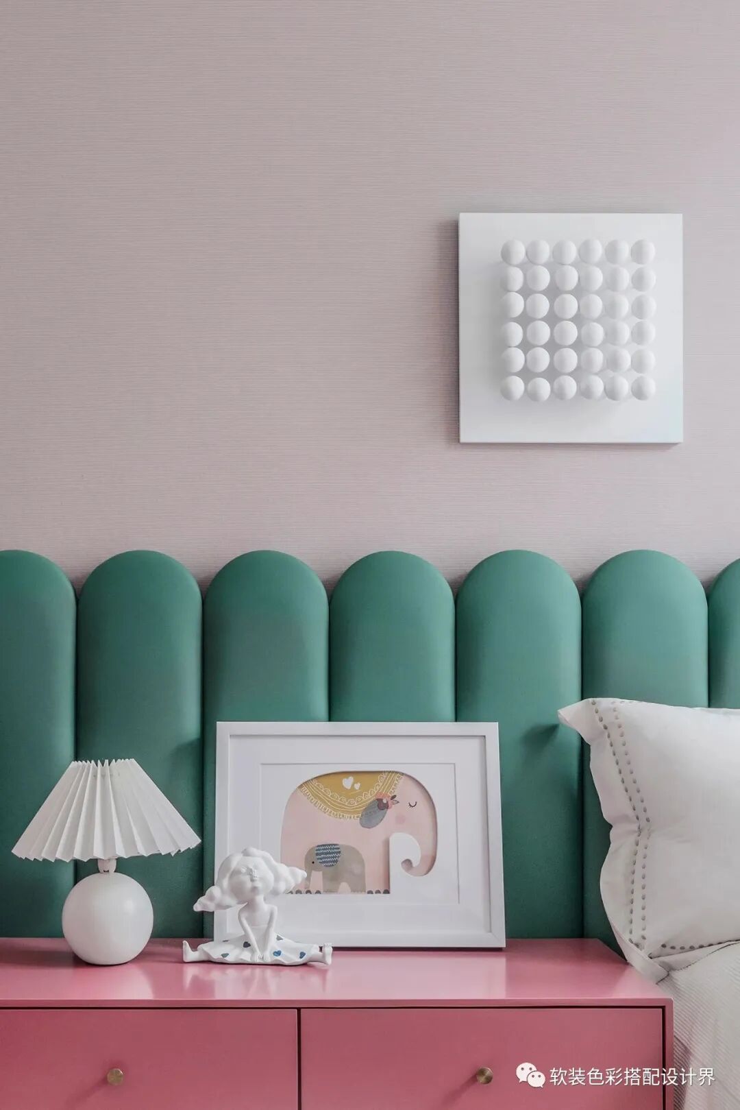儿童区的陈设设计,不仅要考虑到居住的舒适,还需要让它充满欢快、童趣与创意的气氛。比如采用浅淡、柔和的色系作为大面积打底,局部小面积可以加入一些动感的鲜艳色,让空间充满活力。图案和造型多用一些卡通、圆润的式样,会让空间更具有可爱感和趣味性。