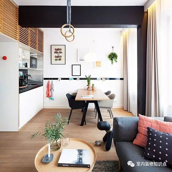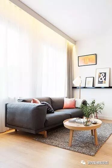 24.客厅整体墙面、地面、顶面,都是偏素净的颜色,沙发就可以选择颜色鲜亮一些的;如果沙发也是较为素净的颜色、款式,那就可以为沙发选择花哨一些的靠包;如果顶面处理得很简单,那么一定要选择一盏精致的灯具,造型上不一定非常复杂,但至少要在匹配整体风格后,尽量使其显得精致。