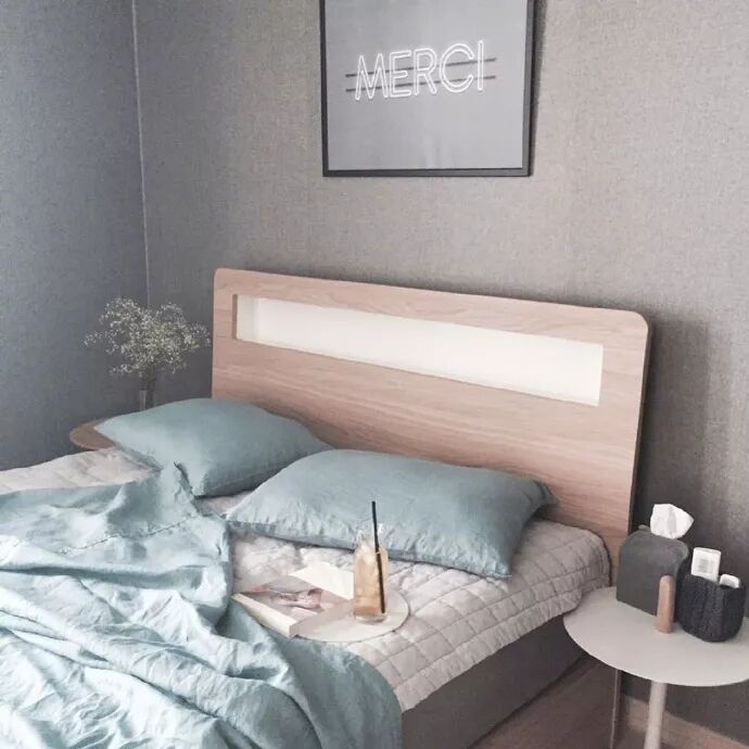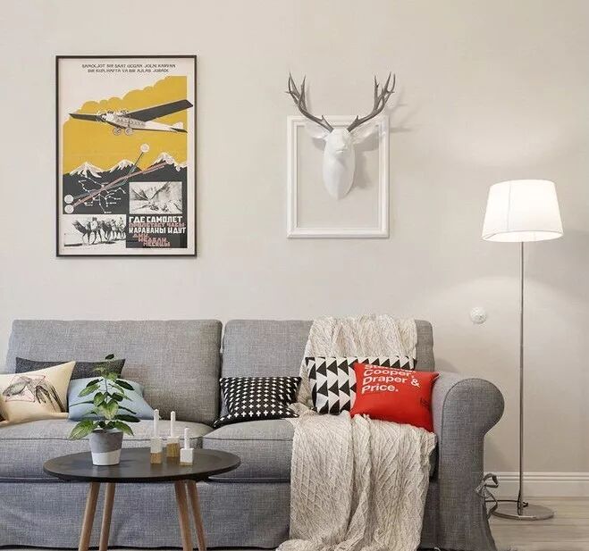 回归墙面本身清爽的颜色,在装饰画和配饰上下功夫。例如挑选体现你独特审美的装饰画、又或者是搭配搁板和装饰品。而且清爽的颜色会比繁杂的色彩更耐看。