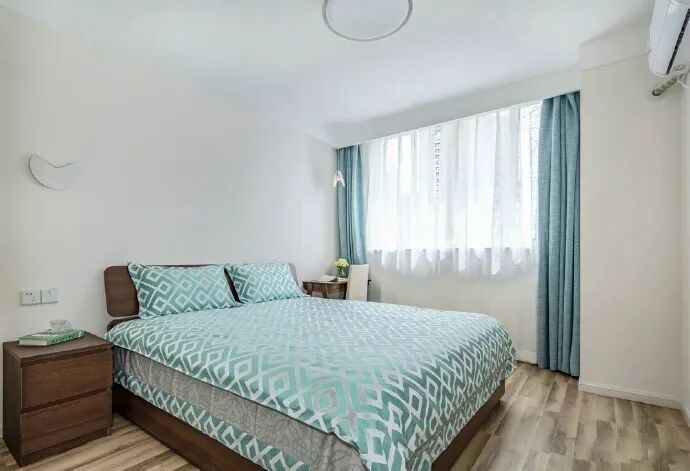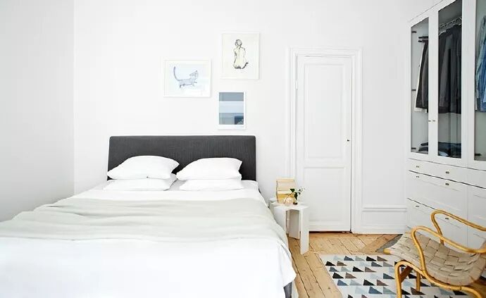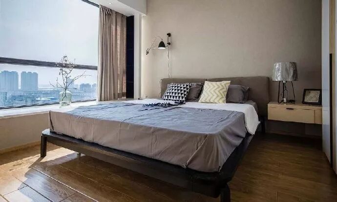 卧室尽量选择样式简单,造型轻巧的,数量方面满足日常使用需求的基本家具就可以了。留出足够的空间,保持卧室的宽敞整洁。另外,可以增加一些布艺的搭配来增加温馨感,例如窗帘、床单、抱枕、地毯等装饰。