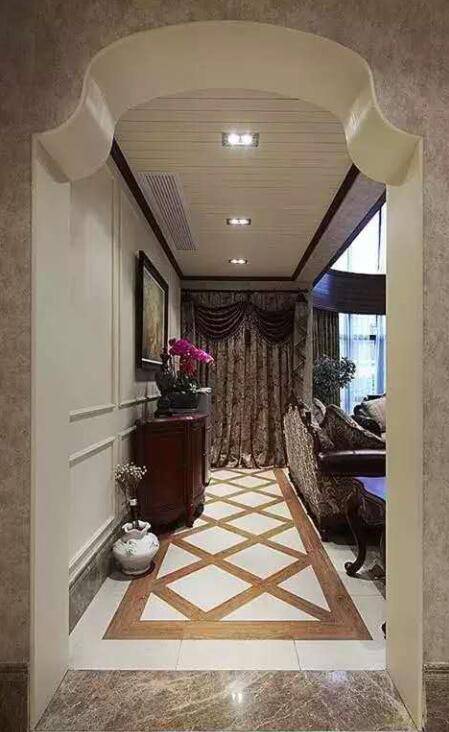 瓷砖种类选择多,瓷砖配瓷砖的做法,可以让装修坚固耐磨,方便清洁。若考虑用花纹的瓷砖来做踢脚线,也会别有一番风味。