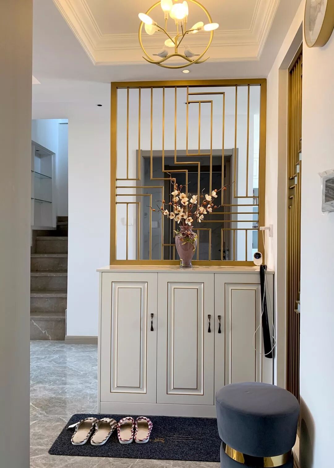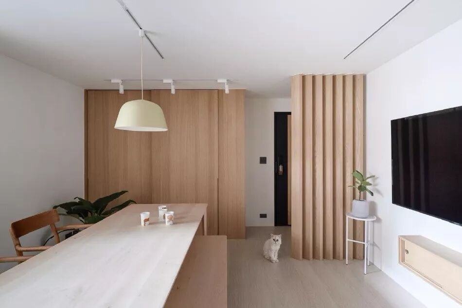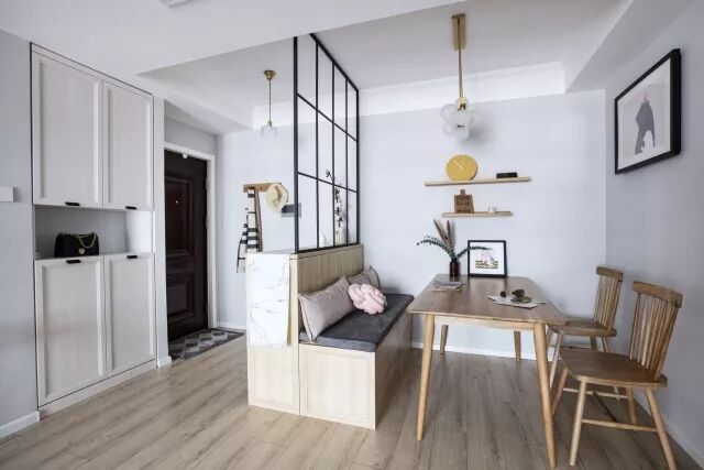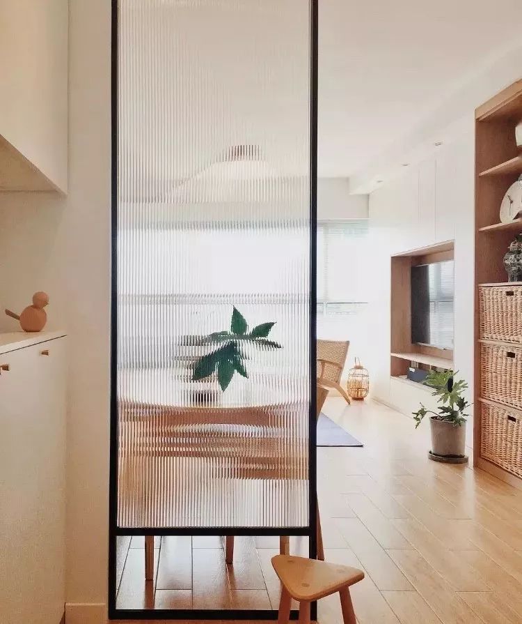 屏风隔断:现在比较少见,因为多多少少会浪费些空间,同时透光性没有透明的玻璃材质那么好用。如果家里空间够大,遇到喜欢的屏风样式,也可以用起来!常见于进门玄关处以及卫生间门口等空间,移动式或固定式可以根据家里的需求来决定;