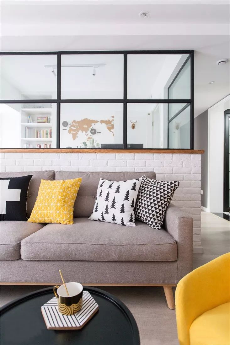 家具隔断:这种方式最方便,常见于小户型,做法很简单,比如玄关与客厅之间做面柜子;客厅与餐厅之间用沙发直接隔开空间;或者还可以做个书柜/架,放在需要分隔的两个空间之间就行了。简单方便,不会浪费空间;