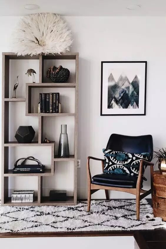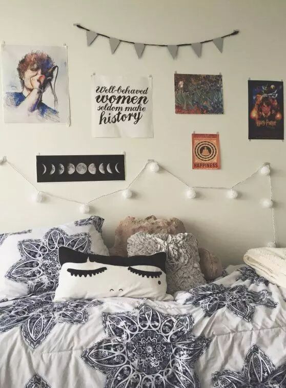 墙上的装饰物可以是自己绘制的独特招贴画。或是某个晴天偶然遇到的小店淘回的黄铜镜子。阳光洒进室内,暖意四溢。