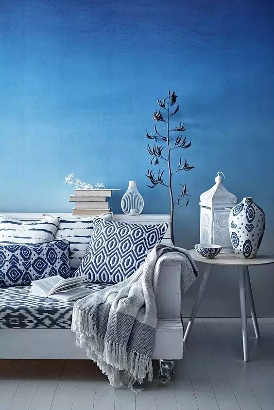 深浅不一的蓝散发出不一样的气质,灰蓝不仅带走了夏日的炎热,也更容易让人变得平和,带来了一种远离世俗感的宁静生活。