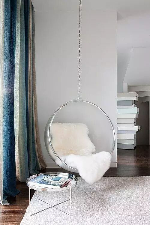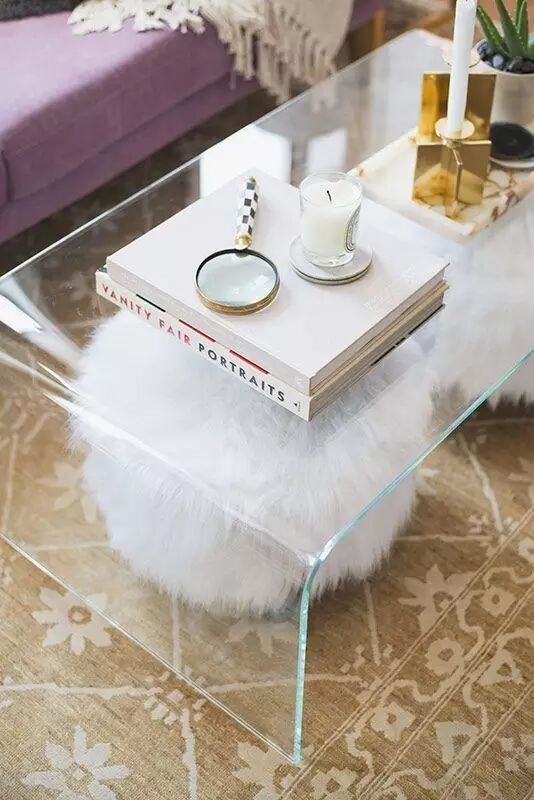 ▼透明茶几,让桌上如如同悬空,有科幻漂浮的感觉。 在茶几下的装饰毛球椅,也可以颇有心机的露出,呈现不一样的存在感,同时也为客人们提供了两个隐藏的座位。