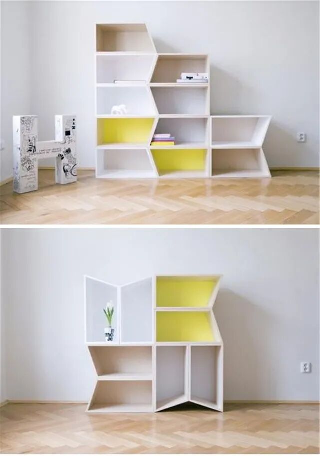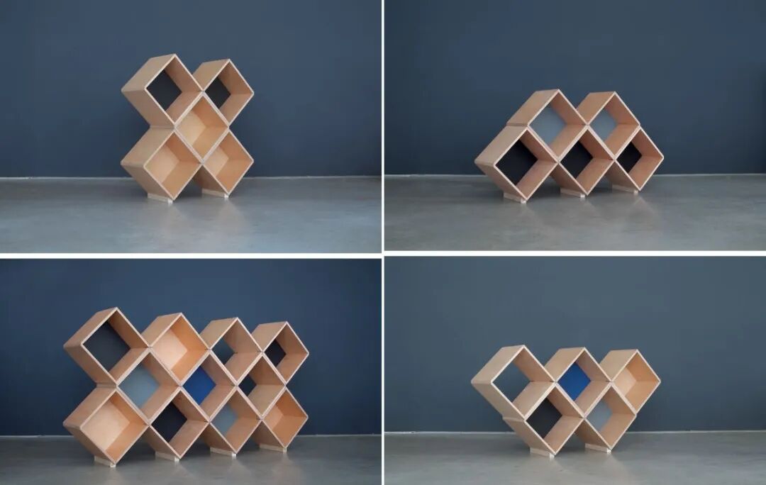 置物架也很适合进行模块化的生产和设计。简单的几何形状,往往能拼出多种充满艺术想象力的图案。