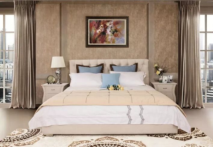 卧室是私密的场所,追求的是舒心,幸福,不需奢华和过多的装饰,也不需美轮美奂的布局,更不需攀比和显摆。用简约质感极好的几件家具,填满温馨和满满的浪漫,就能让人好好的享受爱意和休憩的恬静,久久不愿离开。