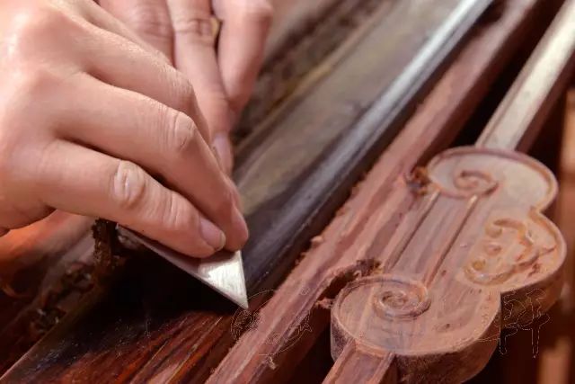 现在的加工很少纯手工制作,如果刮磨这道工序可以做到手工就已经很不错了。因为木雕关键的工序就是打磨。但因为现在的工具很先进,工匠通常使用机磨。传统的用刀刮磨工艺,很多人已经不懂了。