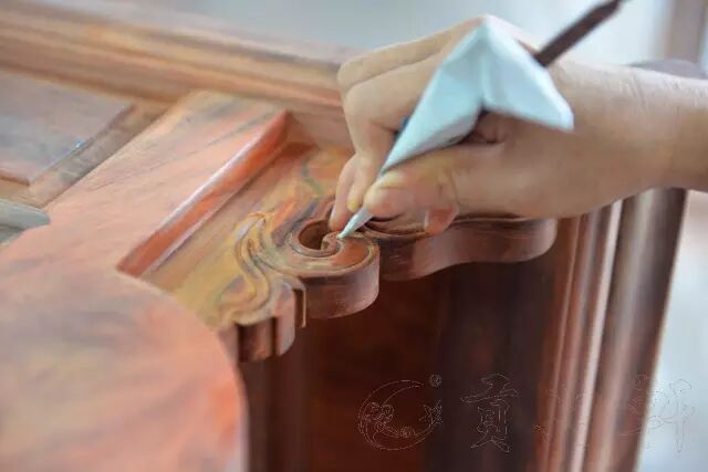 其次,可以使家具在刮磨过程中,更容易防止波浪纹、毛刺等,表面更加的平、滑、顺。因为在刮磨中凡是留有水迹的地方都是不平整的。而古典家具要求每一个部件的四面都刮磨光滑直至无波浪和毛刺等;每一处线条要平整、润滑、饱满;家具内外也要光滑一致。