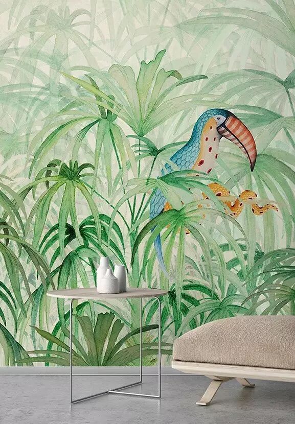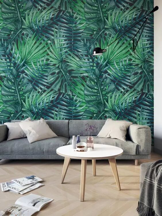 图案比较大的绿植壁纸,局部贴可选主墙,或选空间最窄的那面墙,例如玄关,客厅、卧室背景墙也会很好看。