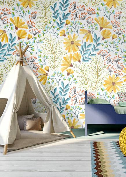大自然的美好不仅可以刺激孩子的大脑细胞,还可以提高大脑兴奋度,提高孩子的注意力。生活在都市的孩子们接触自然的机会不多,在孩子休息区或者活动区贴上植物壁纸是个不错的选择。