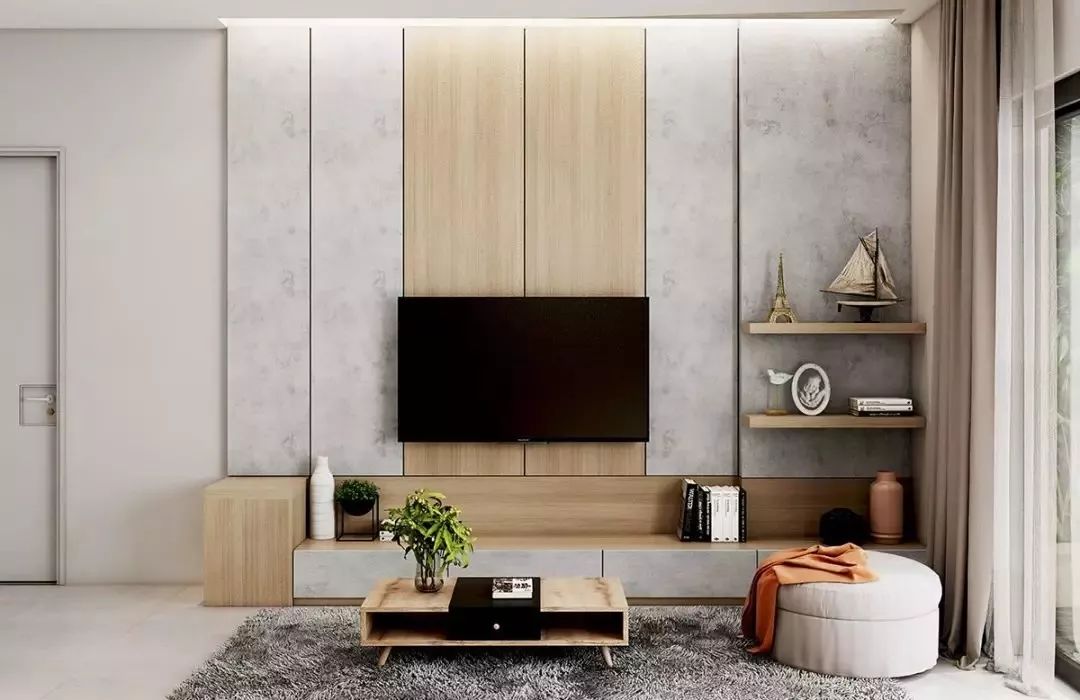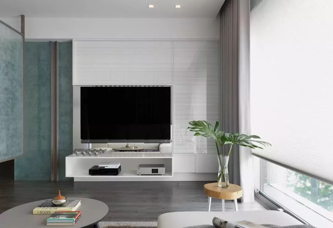 然而,随着极简主义思潮的风靡,以及电视自身存在感的大大削弱,人们的家装观念也受到了一定影响,开始崇尚「去繁从简」,不做繁复的修饰与设计,让电视背景墙变得实用、美观起来。