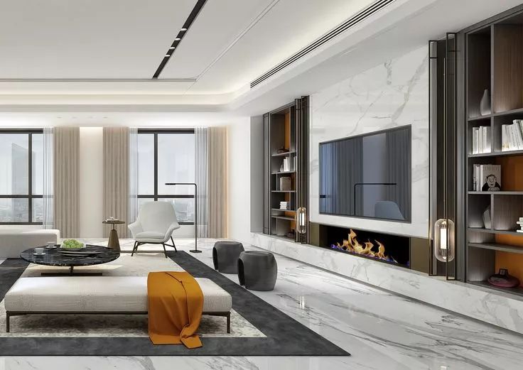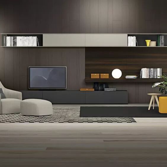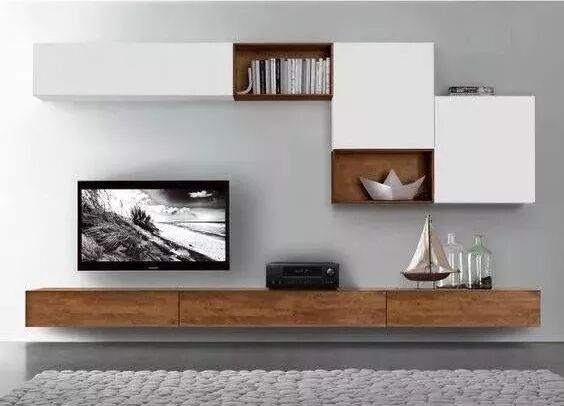 你还可以根据自己的需求灵活选择,封闭式或开放式的柜门,避免视觉杂乱,或者干脆将电视隐藏起来,需要的时候打开移门,就能为整个客厅颜值加分不少哦~