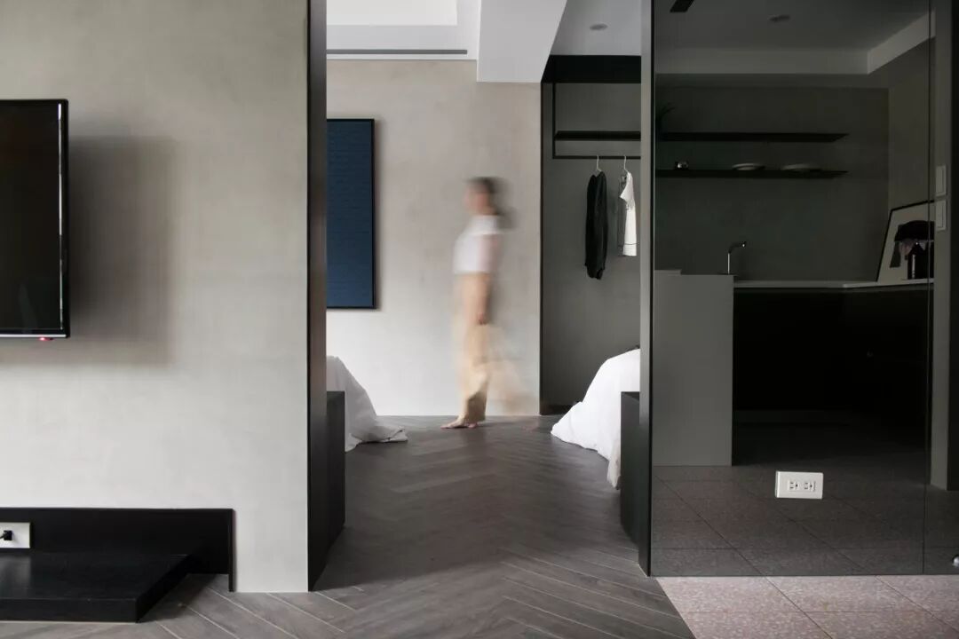在这间位于城市里由老屋改造的民宿,屋主希望打造让旅客宛如回到自己家中的自在居所。和和设计以女性视角出发,以柔和优雅作为空间主调,将室内隔出三个套房,分别为家庭房、两人大套房与两人房。墙面漆上仿清水模特殊漆料呈现简约干净的风格,并搭配人字拼地板提升空间暖度,而每个房间则各施以湖水绿、粉红、蓝色跳色区隔所属氛围,最后再以金色系的灯具、边桌、茶几勾勒空间线条画龙点睛。而卫浴延续室内干净简洁的风格,但改以黑色五金增添中性性格也让空间个性更有层次。