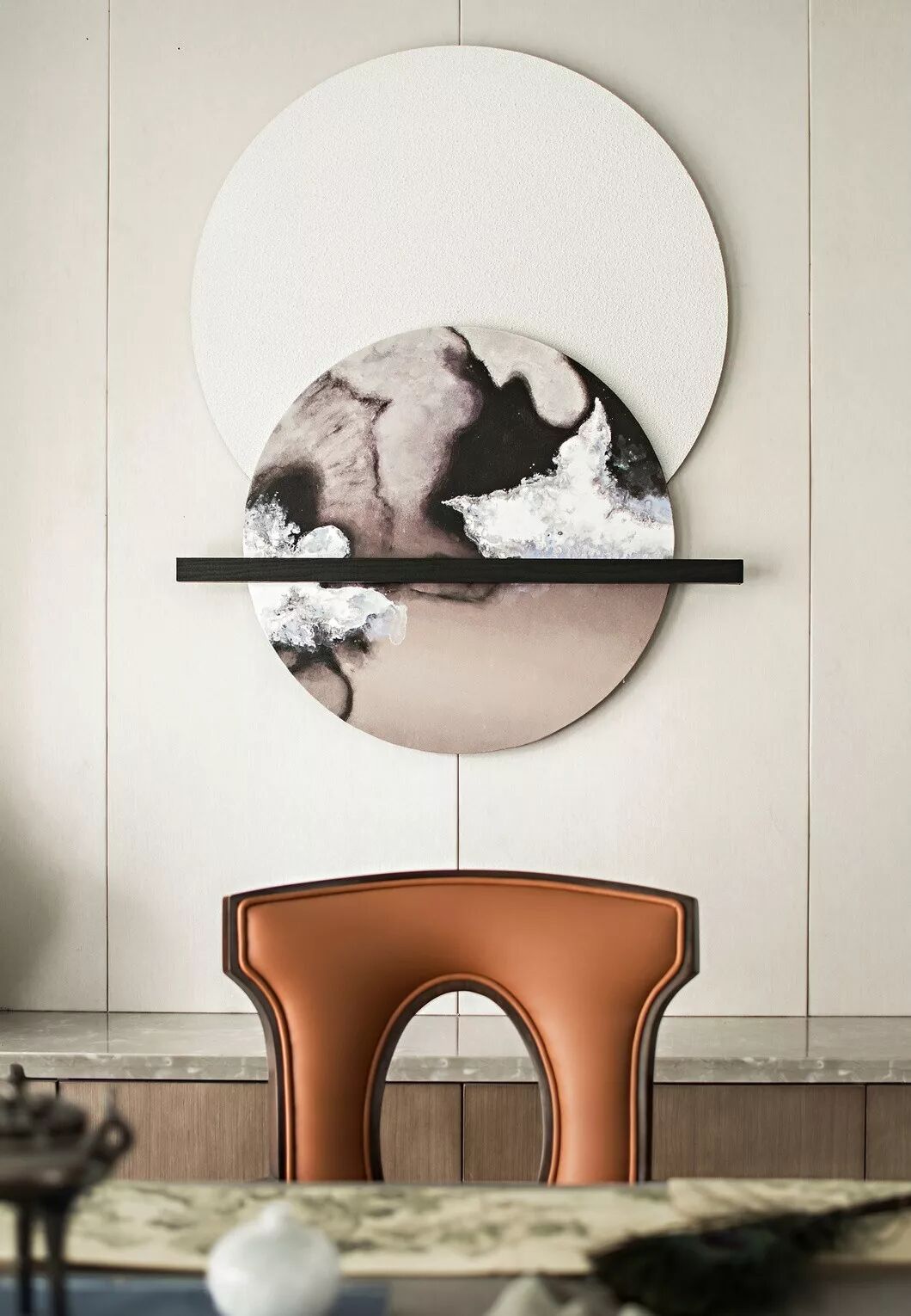放眼望去,整个设计一改传统中式的繁复与沉闷,不华丽、不抢眼,而是将新中式的沉稳大气注入到现代生活方式中,既有现代设计的简约,又契合东方传统的古典气韵。