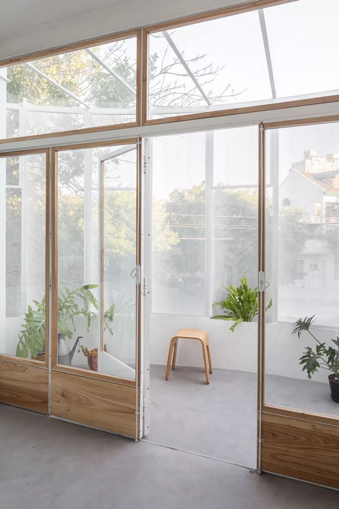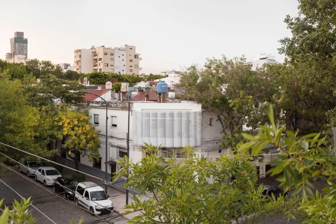 这套公寓是阿根廷建筑师IR arquitectura最近重新设计的,是上世纪50年代在布宜诺斯艾利斯Chacarita社区建造的房产的一部分。它占据了一层“ochava”,也就是建筑一楼的一个角落,可以俯瞰下面的街道。