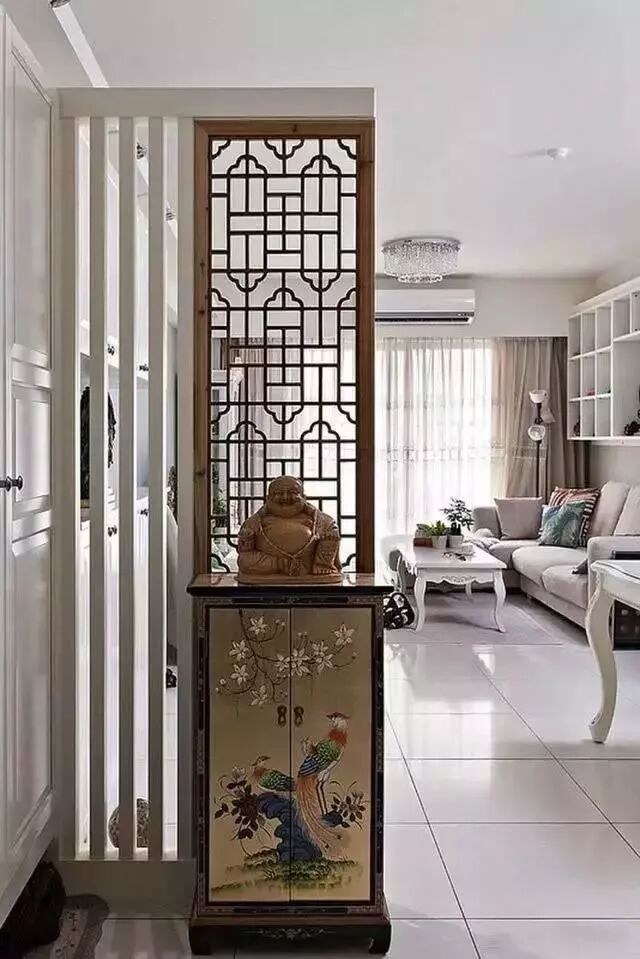 对于业主A,她想对餐厅空间有个遮挡,可以在大门的地方设置一个玄关隔断(如下图),不仅可以充分利用空间,更有利于保护家里的隐私。