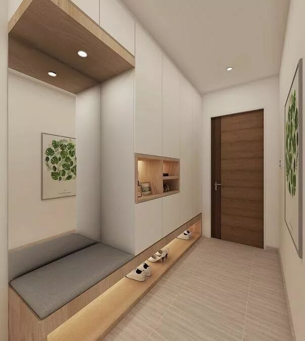 在日常生活中,还有很多大门正对客厅的情况,简单的处理方法就是在左右两边靠墙的位置设置收纳柜或者鞋柜,如果想让家居空间更具隐私,可以根据自己家的实际情况,设计隔断,美观和实用性兼顾,下面我们一起来看看入门处的一些比较实用性的设计。