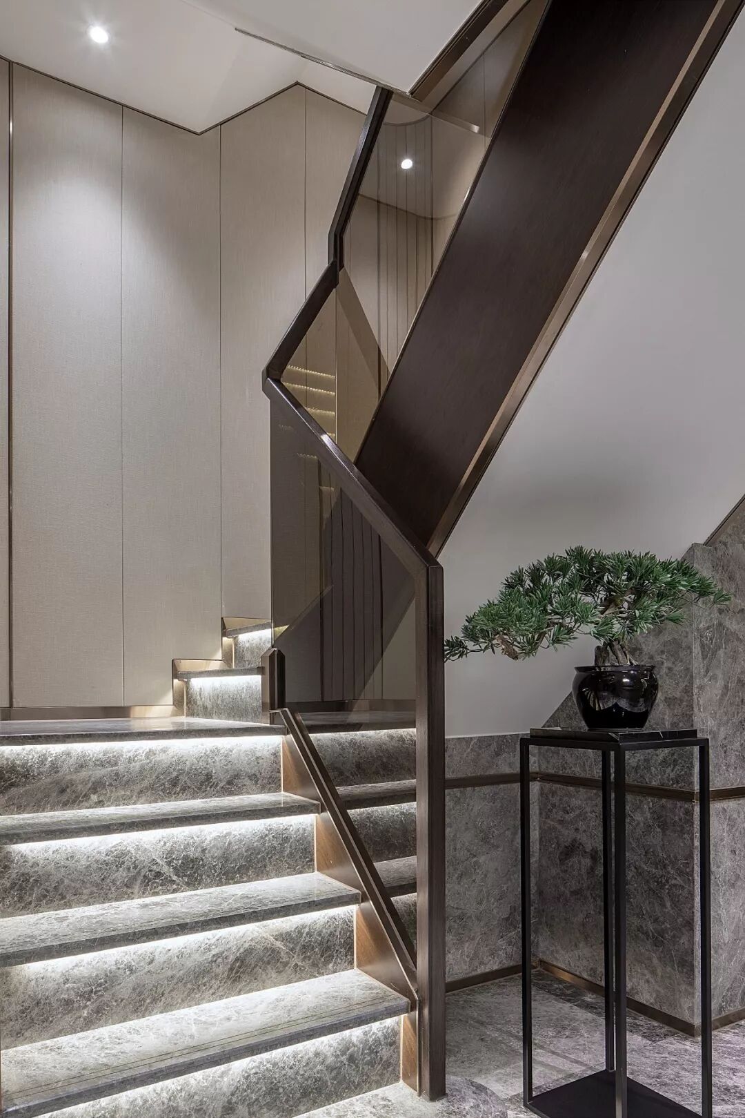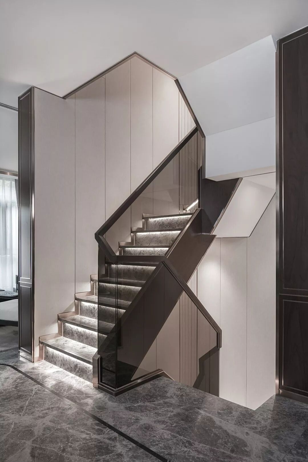 拾级而上,楼梯间的竖形挂画引人注目,不同空间各有趣味所在,徜徉当中不觉乏味,只增惊喜,细节处可察设计师匠心所在。