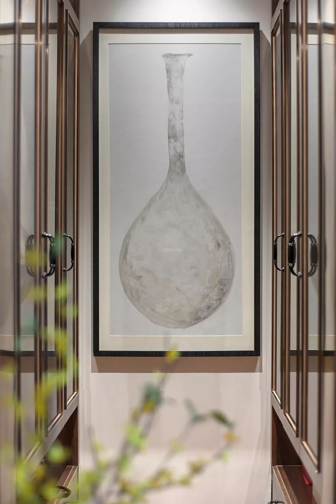 浮雕立体挂画位于墙面最核心的位置,隐隐浮现古建筑的印迹,历史之感,文人之风顿时浮于眼前,这一隅赋予空间探索的余味。局部摆件和插花讲究节奏感与韵律美,以远近前后的不同类比,凸显空间的层次感与秩序性,激情与优雅并存。