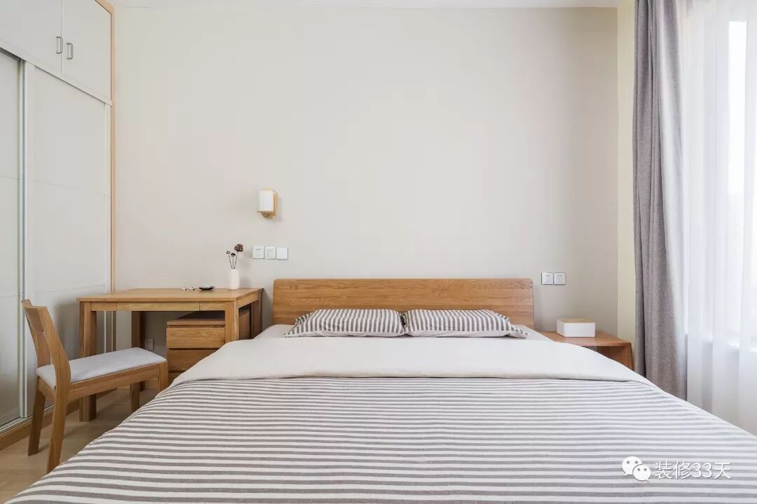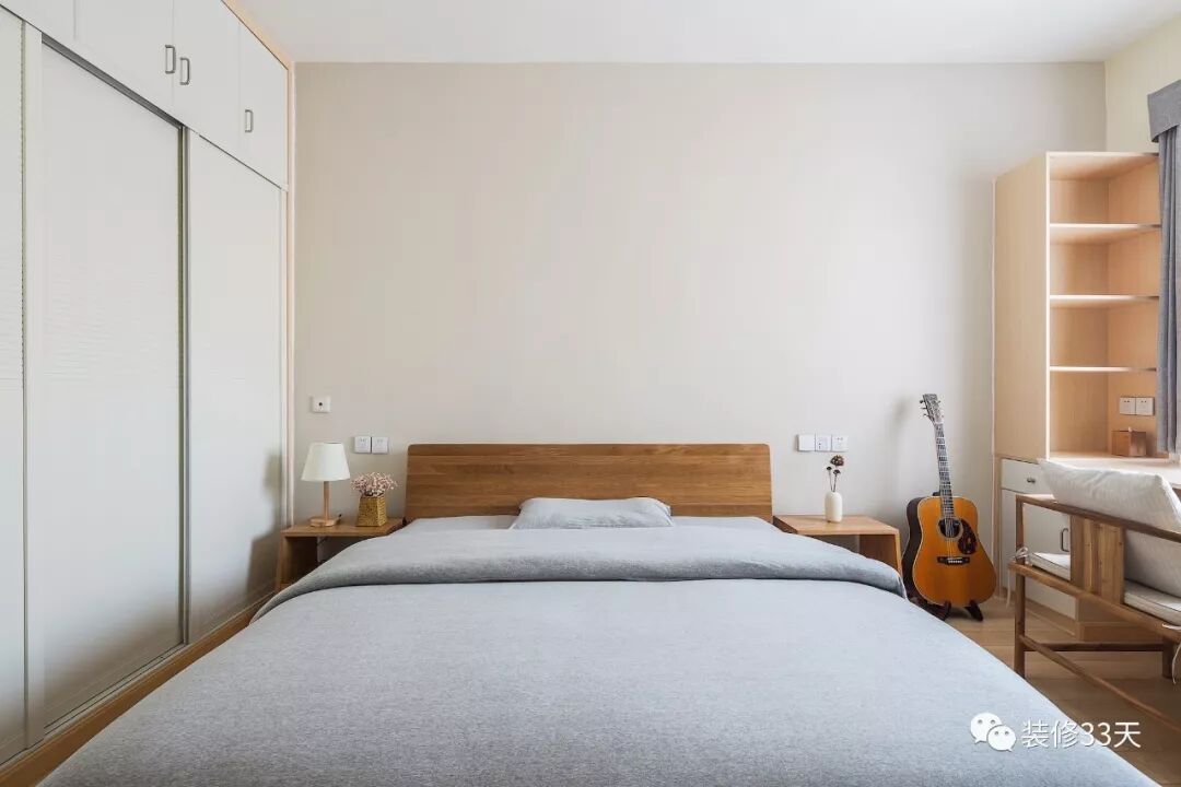 ▲ 客卧整体朴素简洁,浅色调墙面搭配木质家具,舒适床品呈现无印风舒眠环境