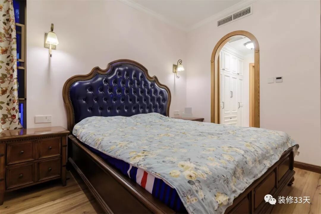▲ 主卧淡淡的粉色系墙面营造浪漫视觉,弧形门洞是衣帽间的入口