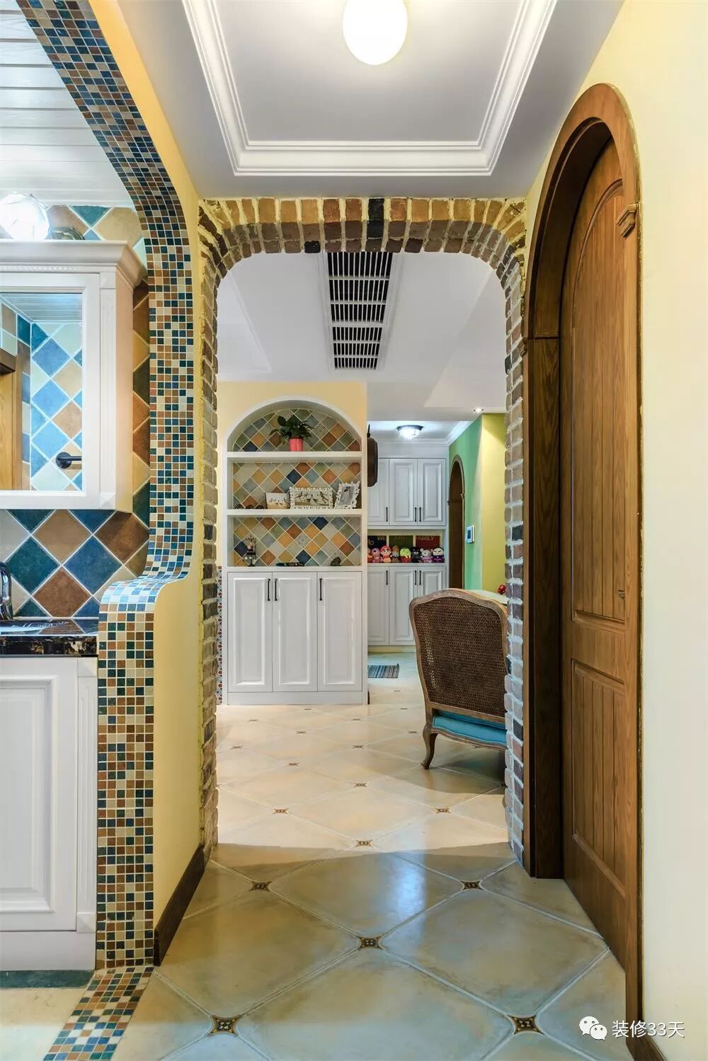 ▲ 整体居家空间中弧形造型无处不在,风格相互呼应,马赛克与小彩砖搭配,从地面延伸至顶面,巧妙划分空间