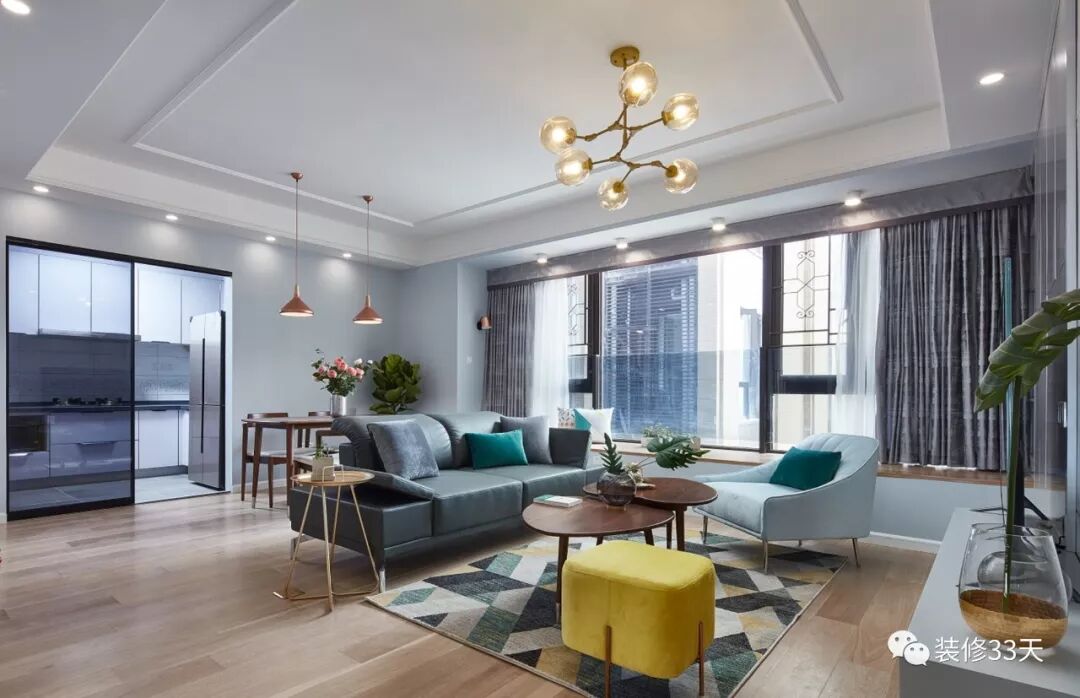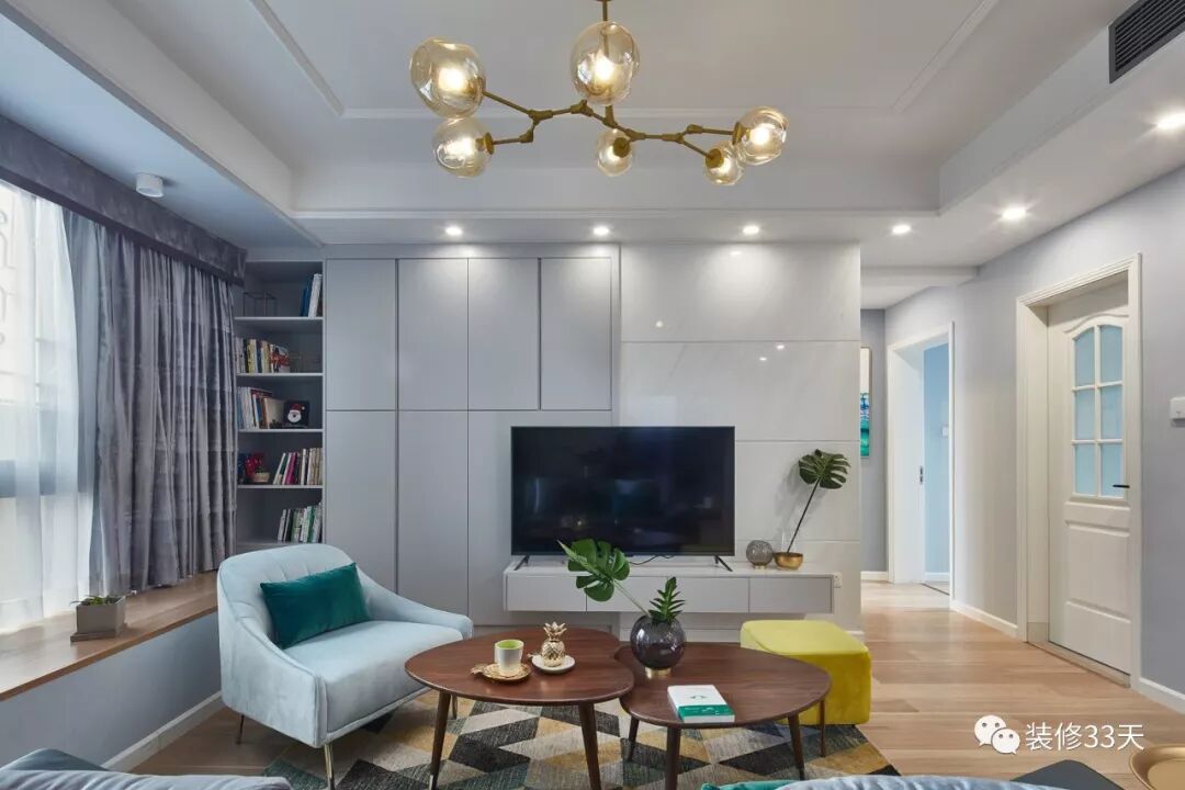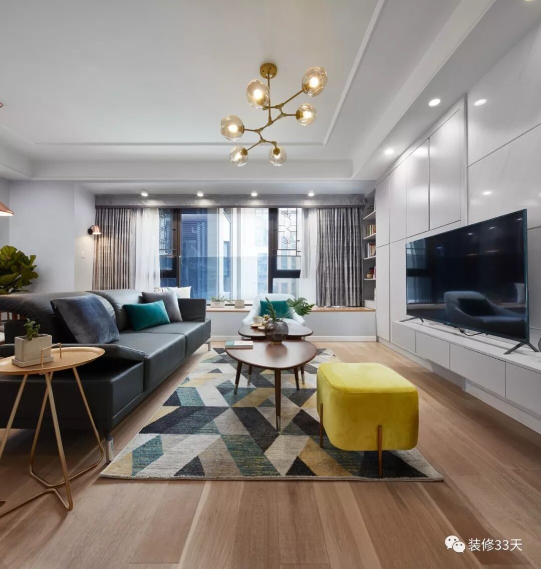 现代——89平现代三室+横厅大飘窗+石材实木电视墙