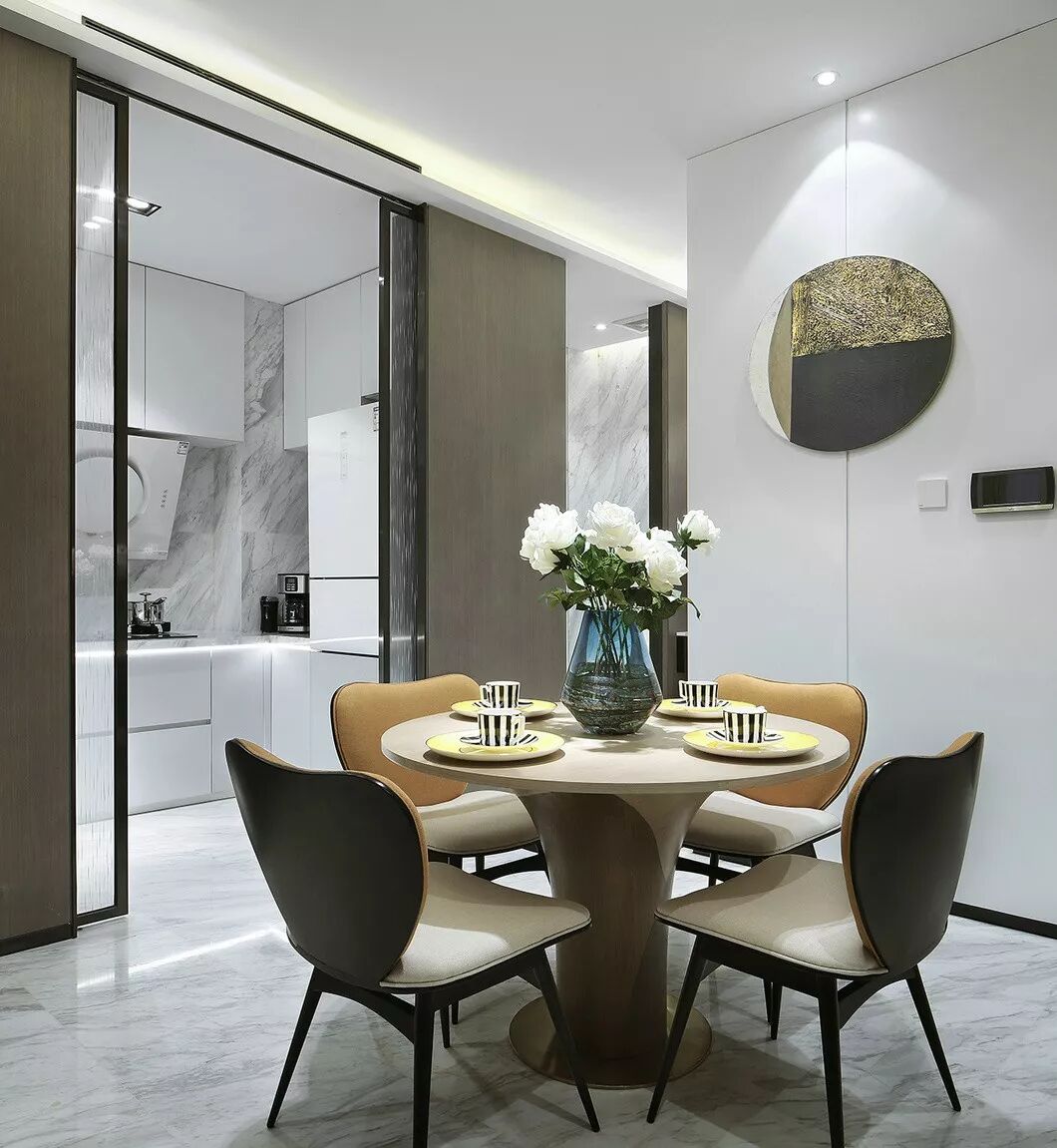 餐厅区域作为各空间的组织环节,尽量在尺度上做大,当变成三房使用时,这个中心区域也会让户型空间显得不局促。