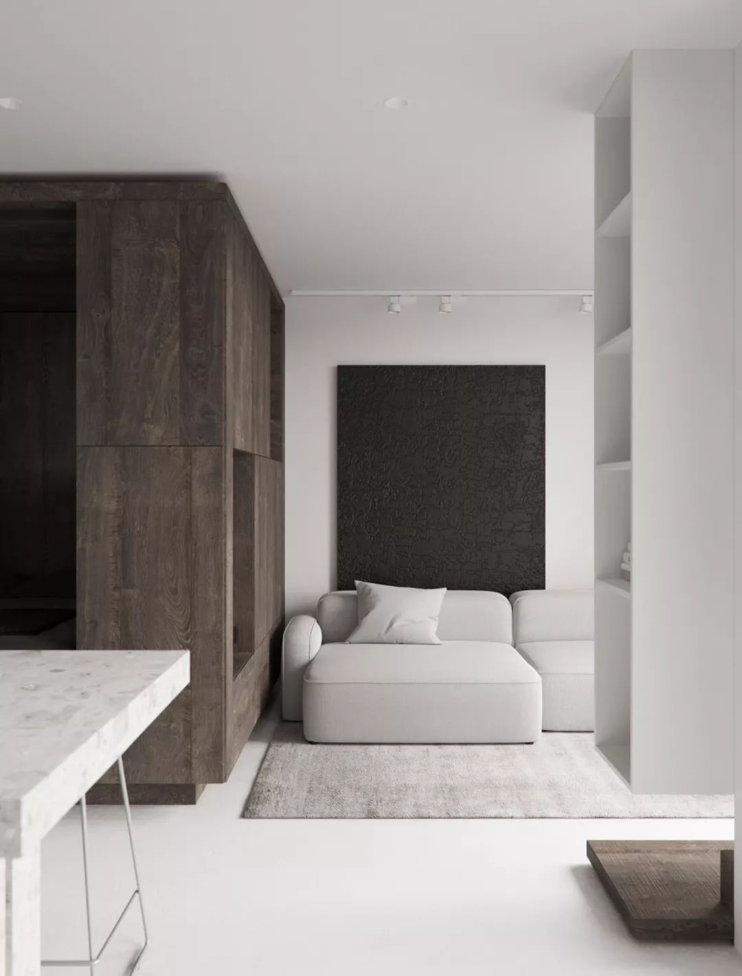 原木和留白是一对灵魂cp,一个清新雅致,一个纯白无瑕,它们的组合不仅让冷冰冰的建筑更具亲和力,也让生活瞬间回归自然味道。