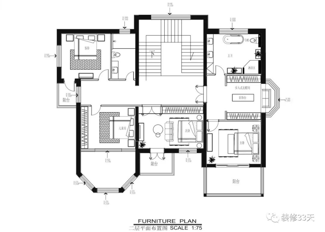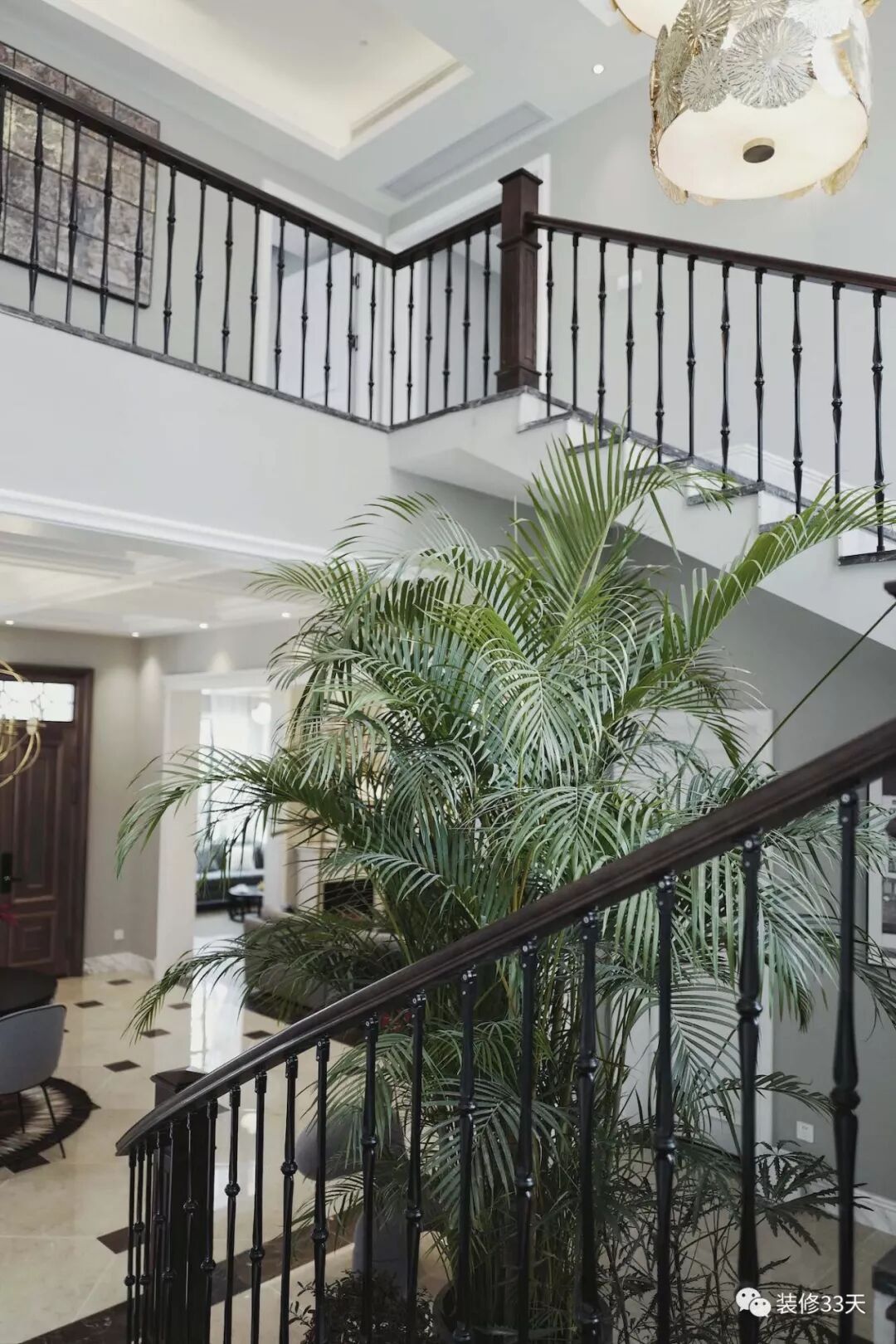▲ 从一楼到二楼楼梯,中部挑空,铁艺护栏给人轻盈感
