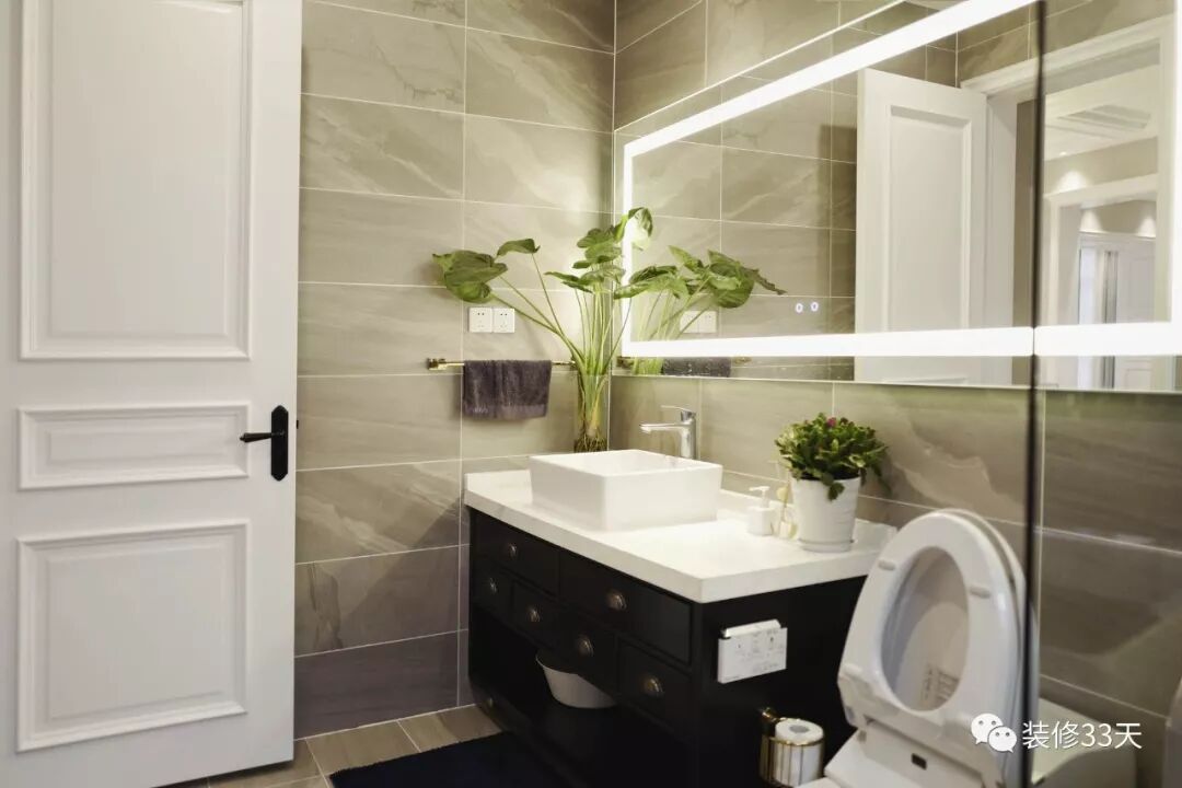 ▲ 客卫灰色调瓷砖搭配灯镜,呈现低调的华丽感