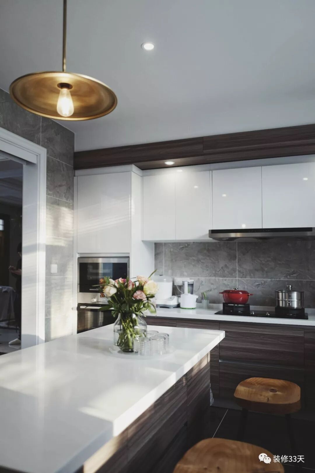 ▲ 带有岛台的大厨房,灰白基调点缀木纹元素,简洁洋气