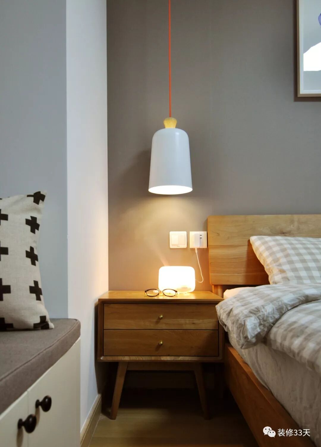 ▲ 床头吊灯让灰冷的空间活跃温馨起来