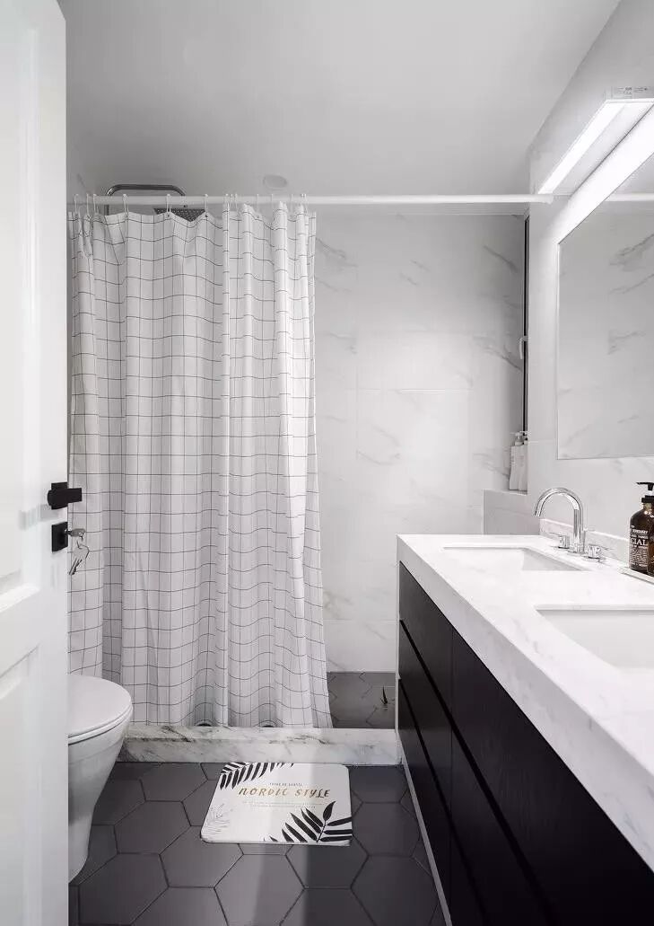 洗澡时用布帘遮挡也有防止钢化玻璃自爆飞溅伤人的作用,同时还能防止肥皂渍粘上玻璃。这比起钢化玻璃贴膜的效果可能要更实惠些!实际上,浴帘和淋浴房不必同时存在,二者选一更可取!