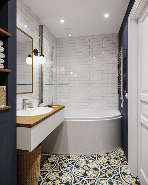 对于这种浴缸需要特别的设计,底部最好有防滑纹,以防在淋浴的时候摔倒,浴缸靠墙安装了花洒,这样装卫生间,我们既可以站在浴缸里淋浴又可以泡在浴缸里沐浴,真实一举两得啊!