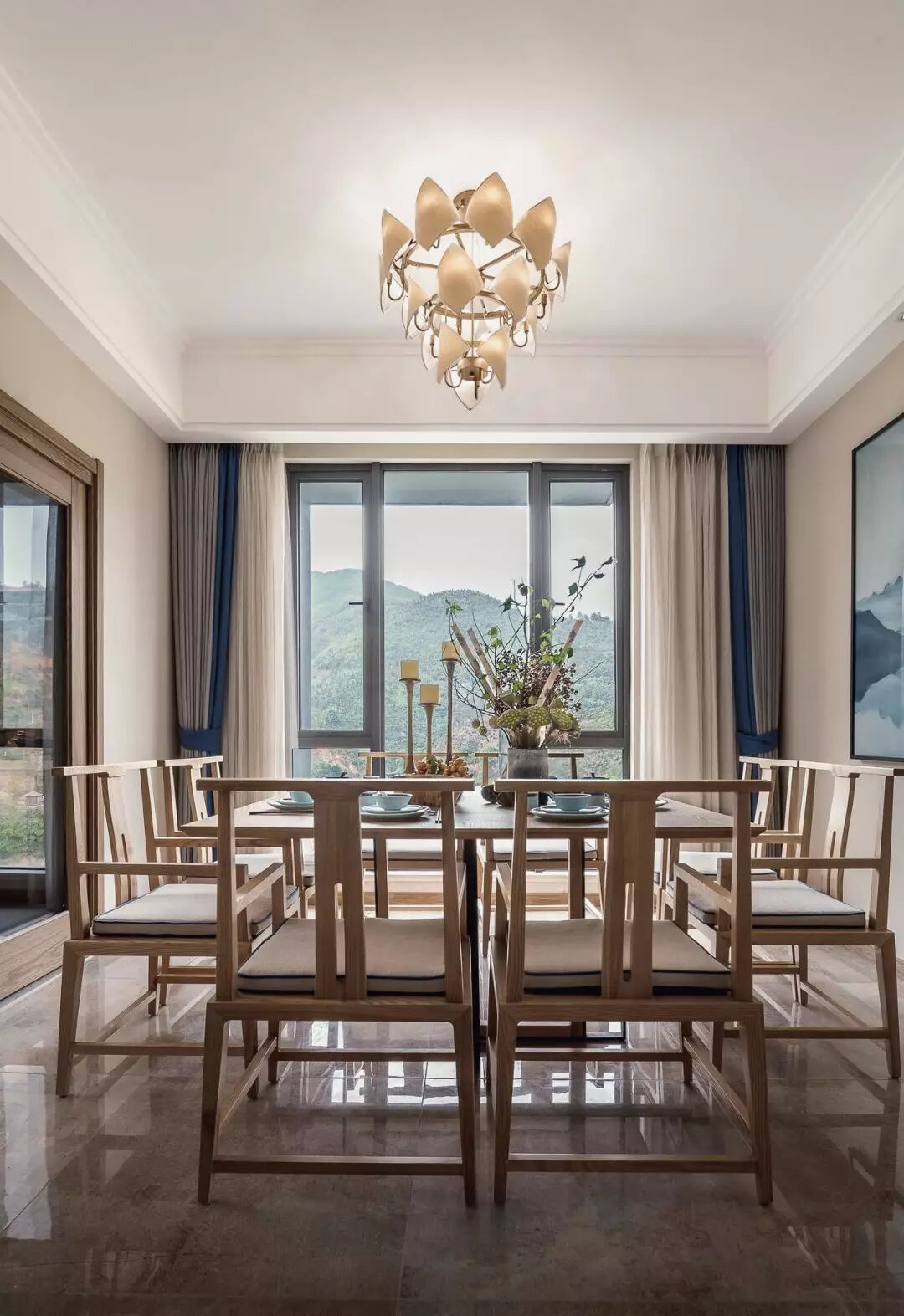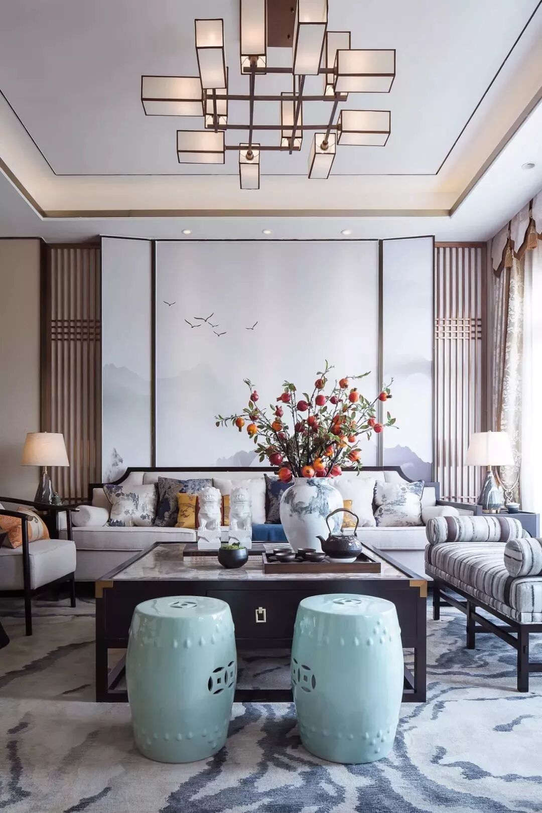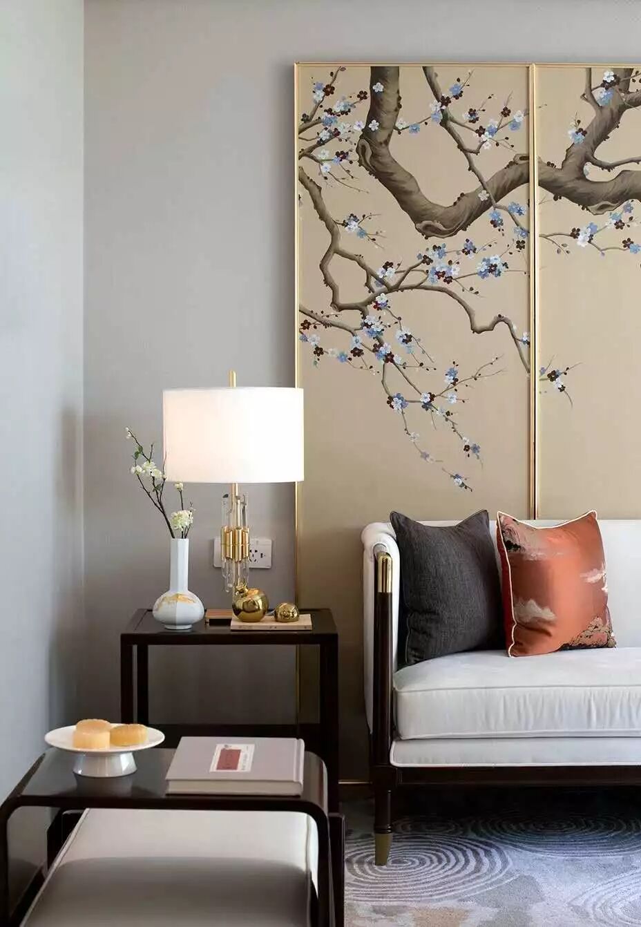 中国风有时候能化在方圆之中,能化在斜插的一枝花里,重要的是打造出山水画一般的意境,而不是一味照搬。