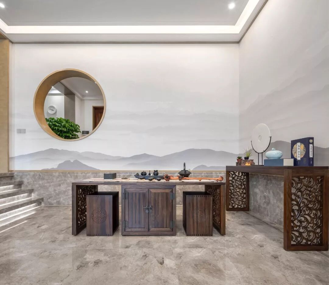 随着中国文化的崛起,伪中式风横行。从网上搜中式背景墙,出来一堆辣眼的色调,以及各种繁琐的设计。殊不知,想要追溯中国式优雅。除了有好看的”表“,还要用传统文化的思想去贯穿它。