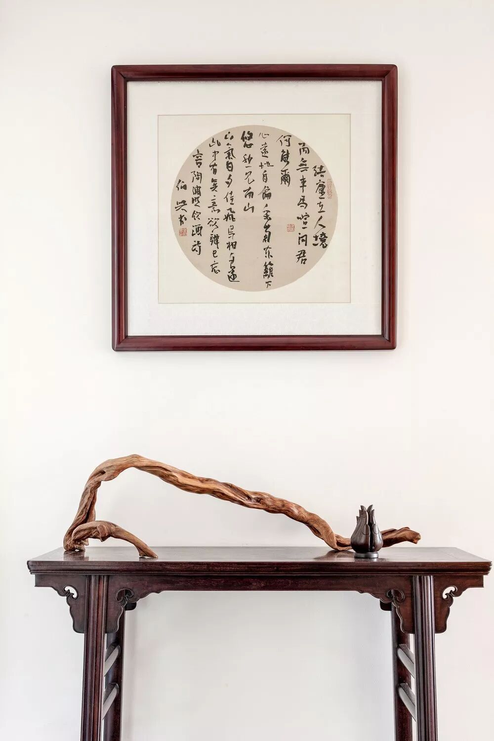 全套的雕花红木家具,想要在普通的住宅空间里,搭配出大气感,是很难实现的,如果住宅空间不超过200㎡,建议搭配具有禅意的宋、明家具。