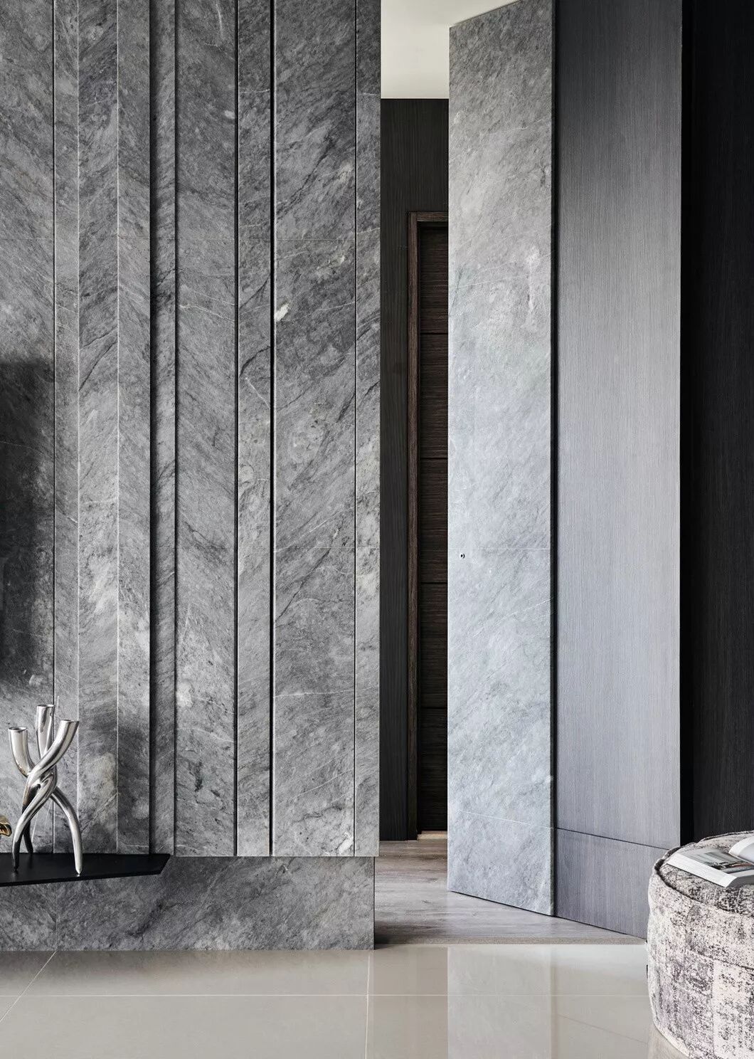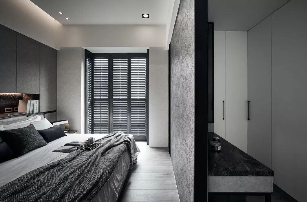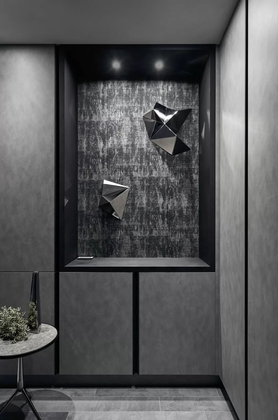 终于有一天,设计师倚靠对美好事物的洞悉,激发灵魂里属于艺术家的部分,创作出玄关处倾斜45度角一面全身镜、房门外切割重组的梳妆镜、镶在灰墙上几何挂饰⋯ ⋯不规则的玻璃造型有如散落的星兀自在空间里闪亮,为沈静色系点上光芒,为画面拼上最后一片迷人色块。