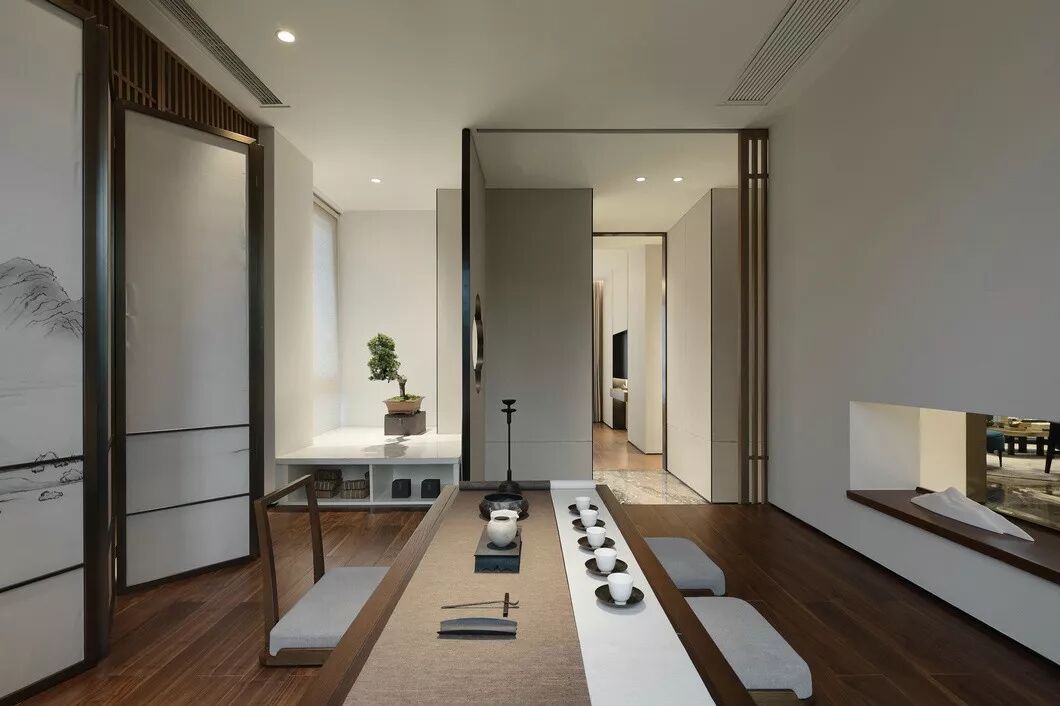 屏风和玄关柜形成入口视觉停顿的焦点,以营造空间的层次感,吊足观者的胃口。