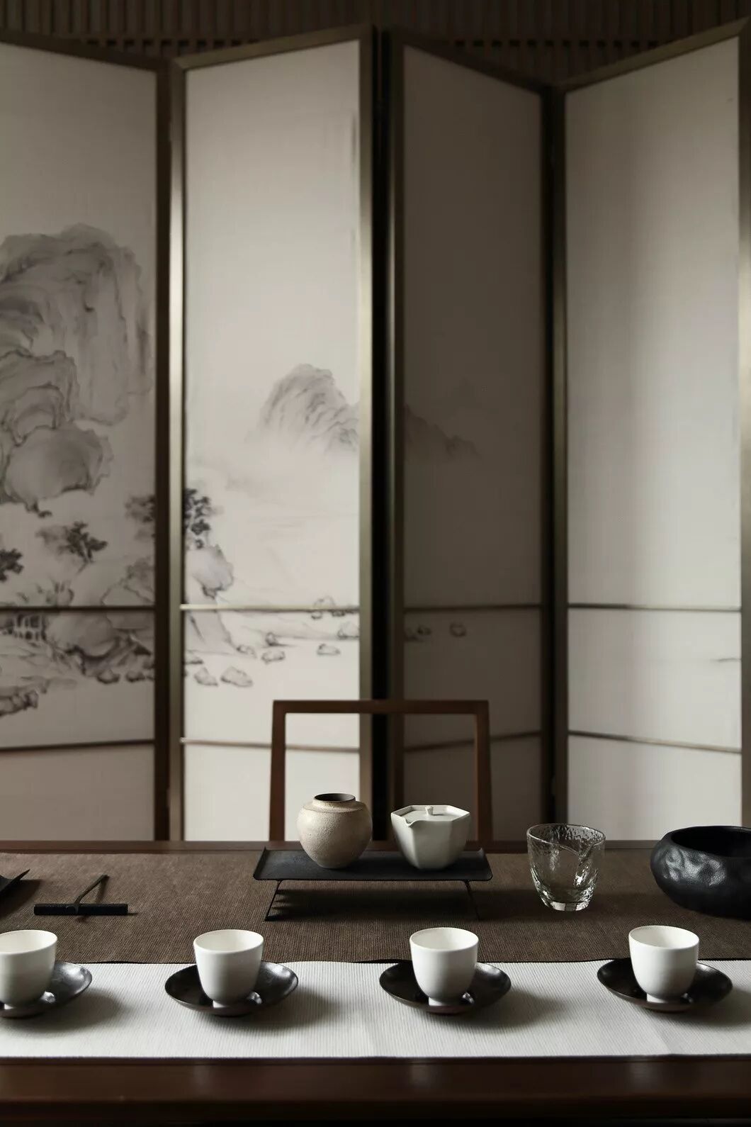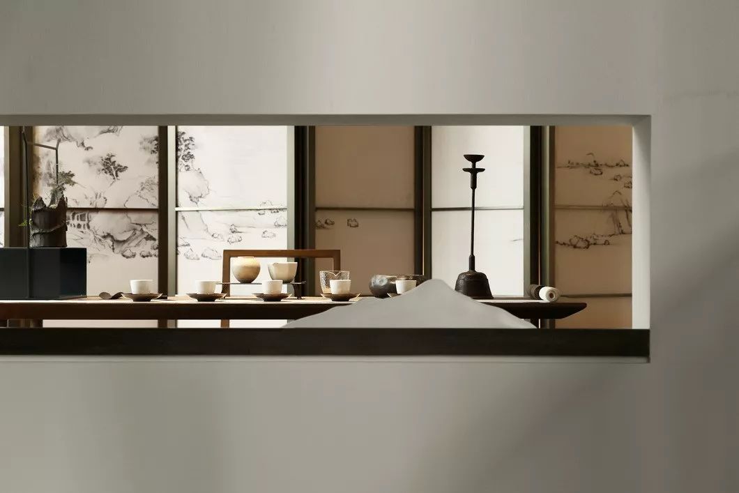 “春来出门访友,夏季荫下纳凉,秋天林间游走,冬日围炉煮茶”,四季应有其顺应之事物,冬日的茶,一直是设计师一场醒不来的深深的梦,茶室依旧拙朴、留白,悠悠禅意中透着一丝优雅闲适的讲究。
