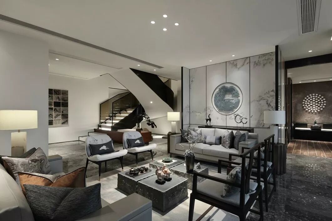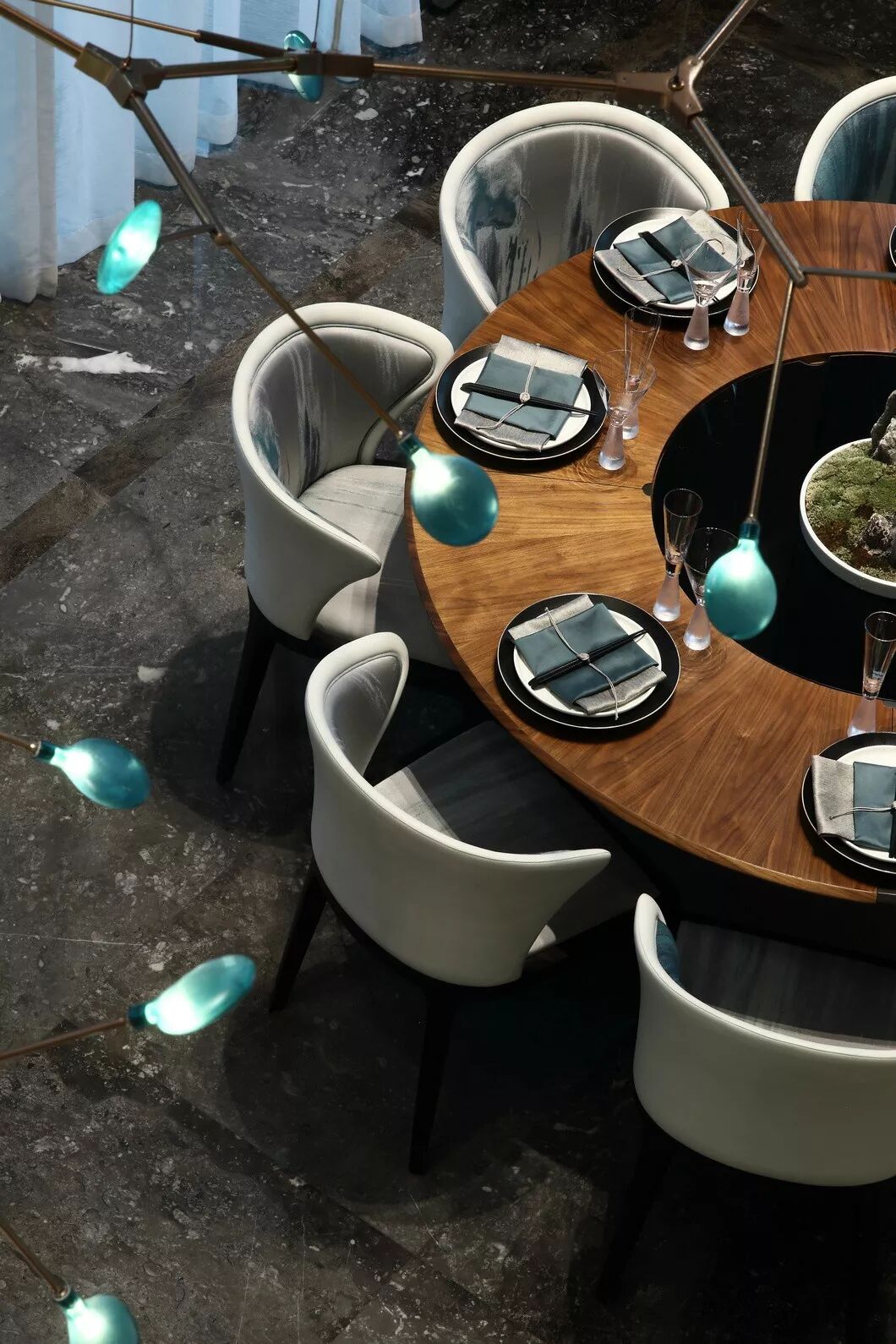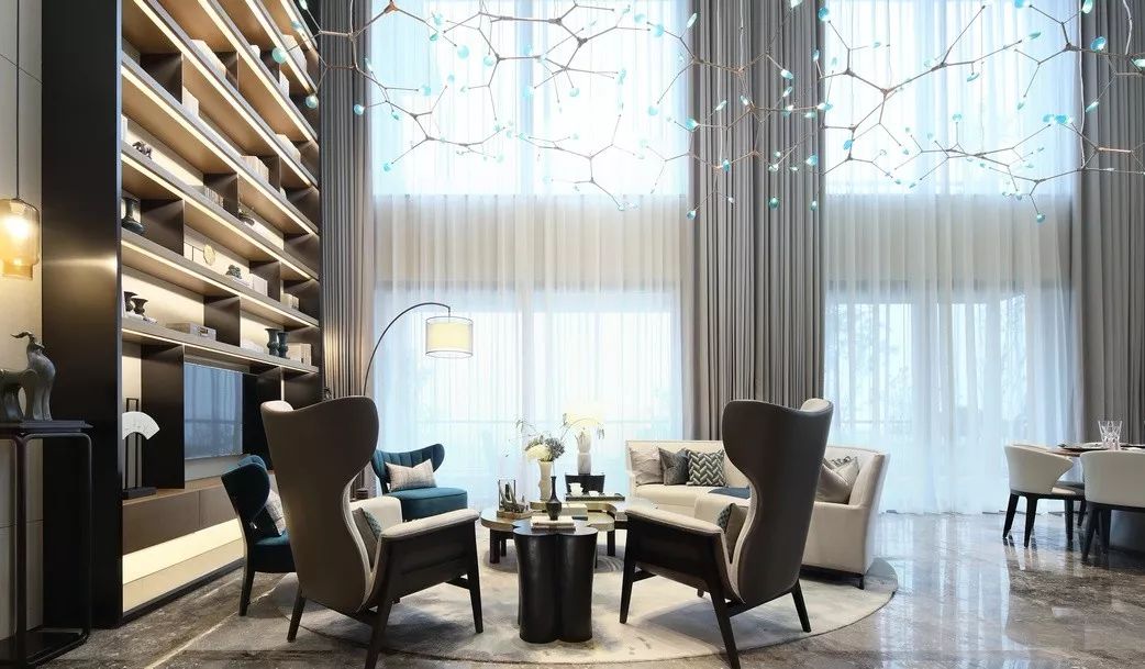 艺术和抽象的软装造型为空间带来极具张力的感觉,现代时尚风格与细腻的艺术气息的植入,使空间特质既满足了现代创新的审美诉求,又有古典的优雅,散发阵阵诗意和浓郁的现代人文气息,于形与意、态与势之间展露出沉稳的贵族风范。