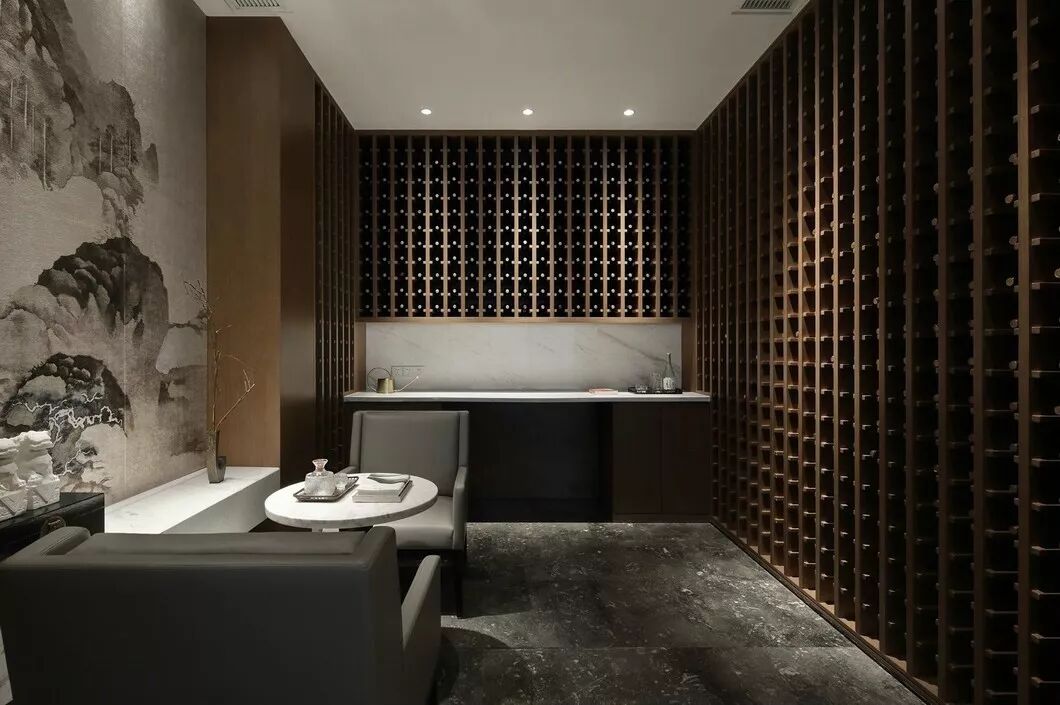 整面的书架和酒架,使空间的“轻与重”、“厚与薄”,在不同的手法下呈现出一股清澈自然的气质。