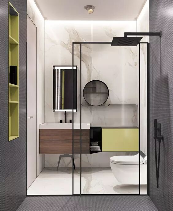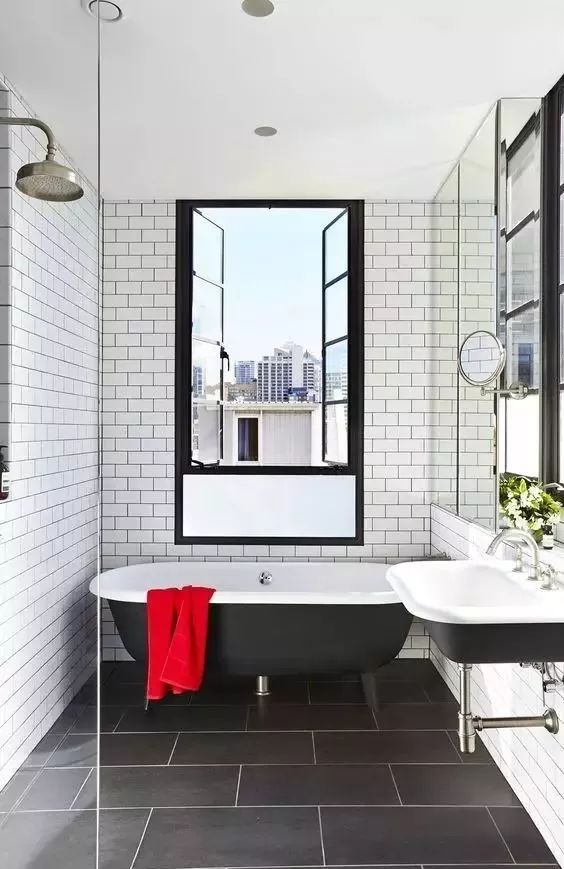 如果担心隐私曝光,你可以使用磨砂或有色玻璃,这依然可以达到很多光线透射的效果,不会让你在淋浴时感到局促压抑。如果不是特别需要,建议放弃浴缸,安装一个淋浴间足矣。浴缸会消耗大量宝贵的空间,而使用率又极低。